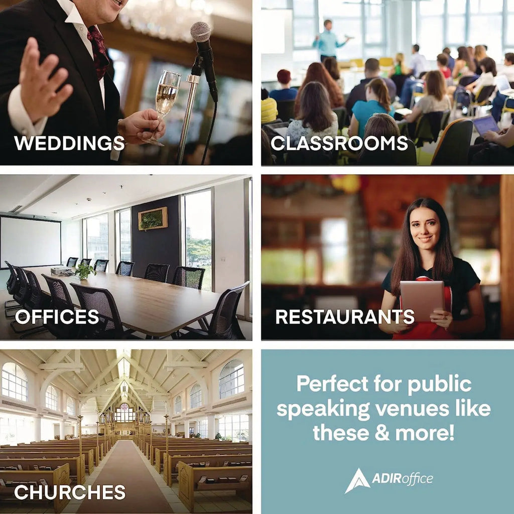 - Shelf space to store brochures or flyers that you would like to pass out to audience members before, during or after your speech.