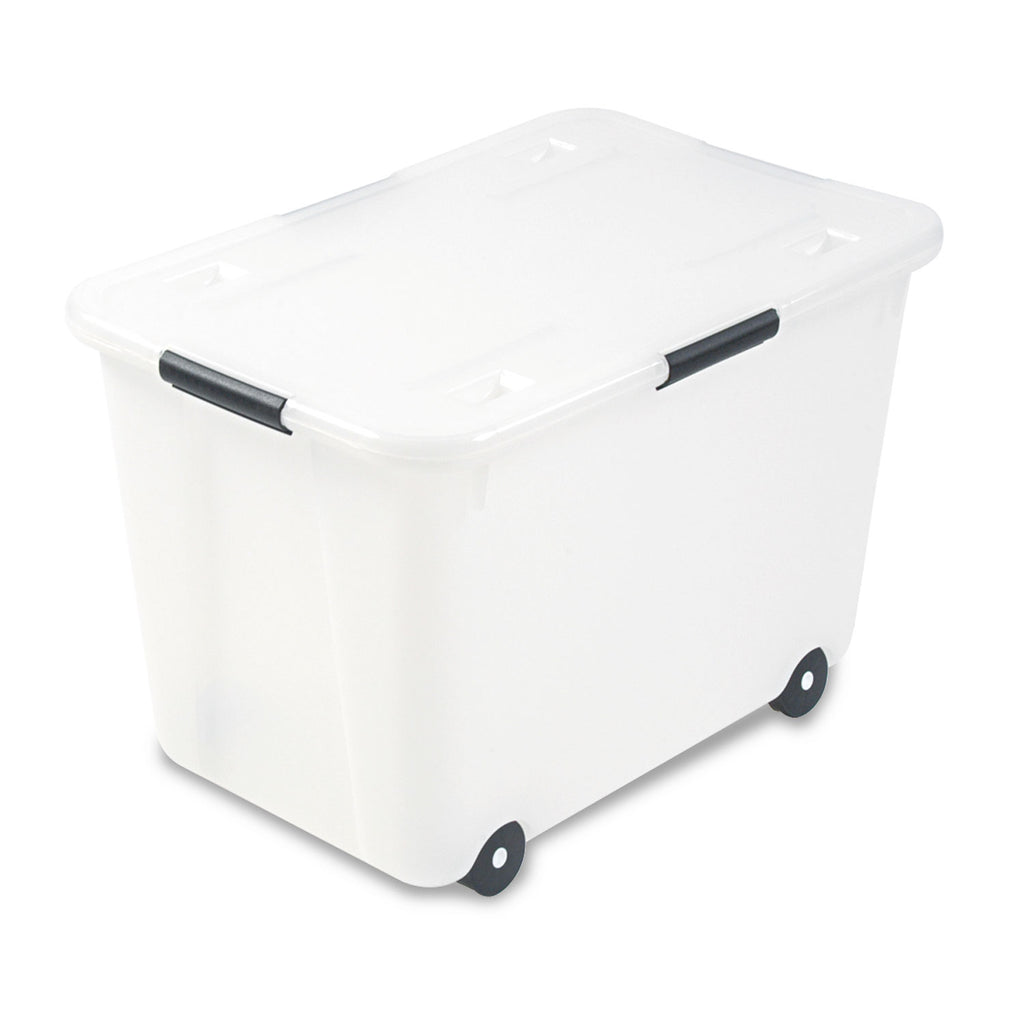 Stack 'em and move 'em. Snap-tight lid features convenient grooves on the top surface so that you can stack boxes without them rolling off. Wheels on bottom allow for hassle-free transport. Clear color makes finding contents easy.