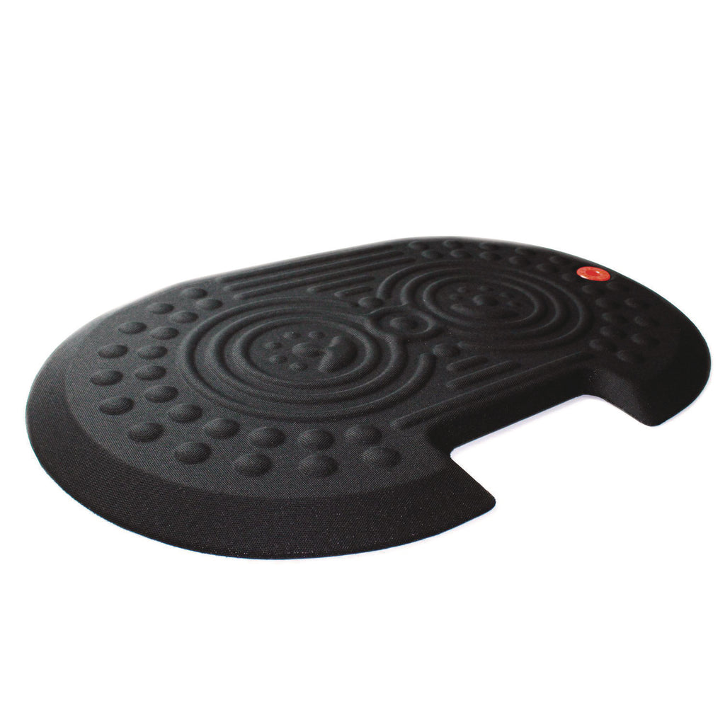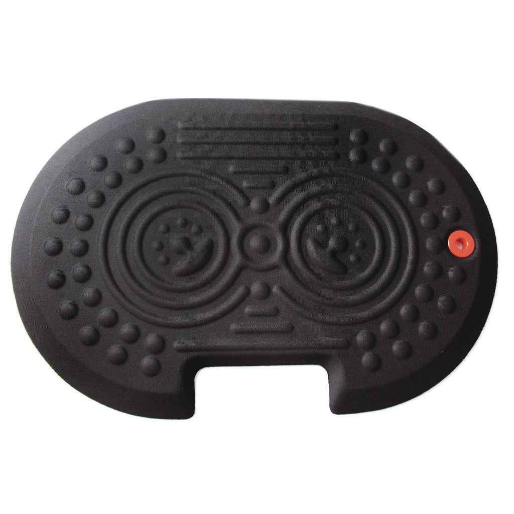 - Ergonomic standing surface includes contoured foot massage features which encourage regular foot movement and changes in standing position that stimulate blood flow for reduced fatigue.