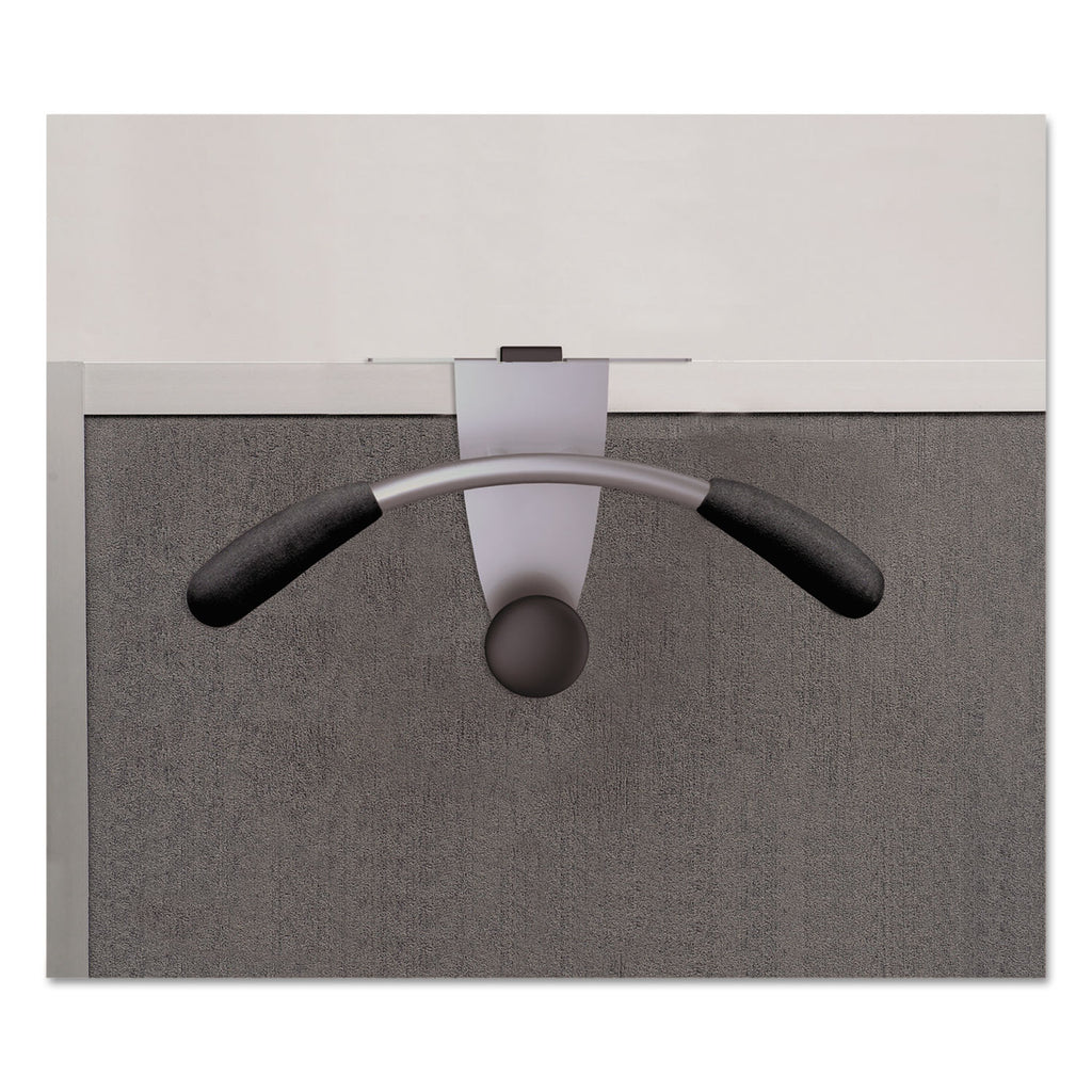 Hook/hanger combination with anti-slip foam and one black plastic coat peg. Keeps garments secure, clean and wrinkle-free. Adjustable to partition widths from 1 1/5" to 4 1/10".