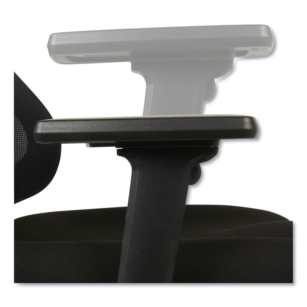 Height and width adjustable chair arms move up and down, as well as pivot in and out, to enable a comfortable position for working. Breathable mesh back provides cool comfort. Contoured molded foam fabric seat offers resilient support. Ergonomically designed chair frame encourages proper posture. Height adjustable ratchet back delivers optimal lumbar support.