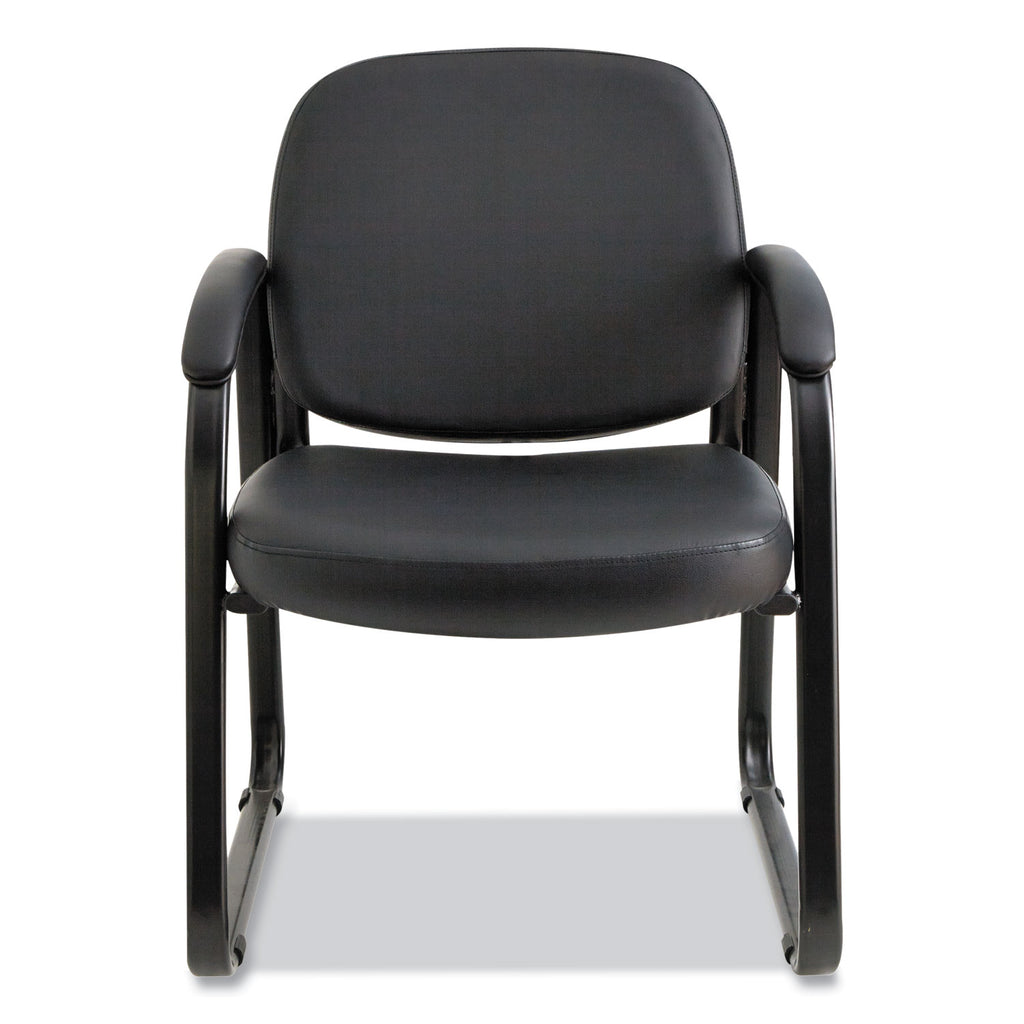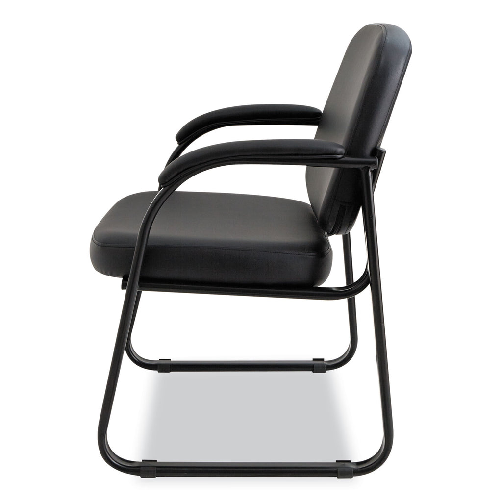Clean, classic lines add comfortable seating to complement any office environment. Use multiple chairs in a configuration to create reception, lounge, conference, and waiting rooms. The thickly padded cushion provides maximum comfort. Constructed from durable upholstery that is designed to withstand everyday use. Padded armrests for soft support. Sturdy steel sled base is designed to keep chair and occupant in place.