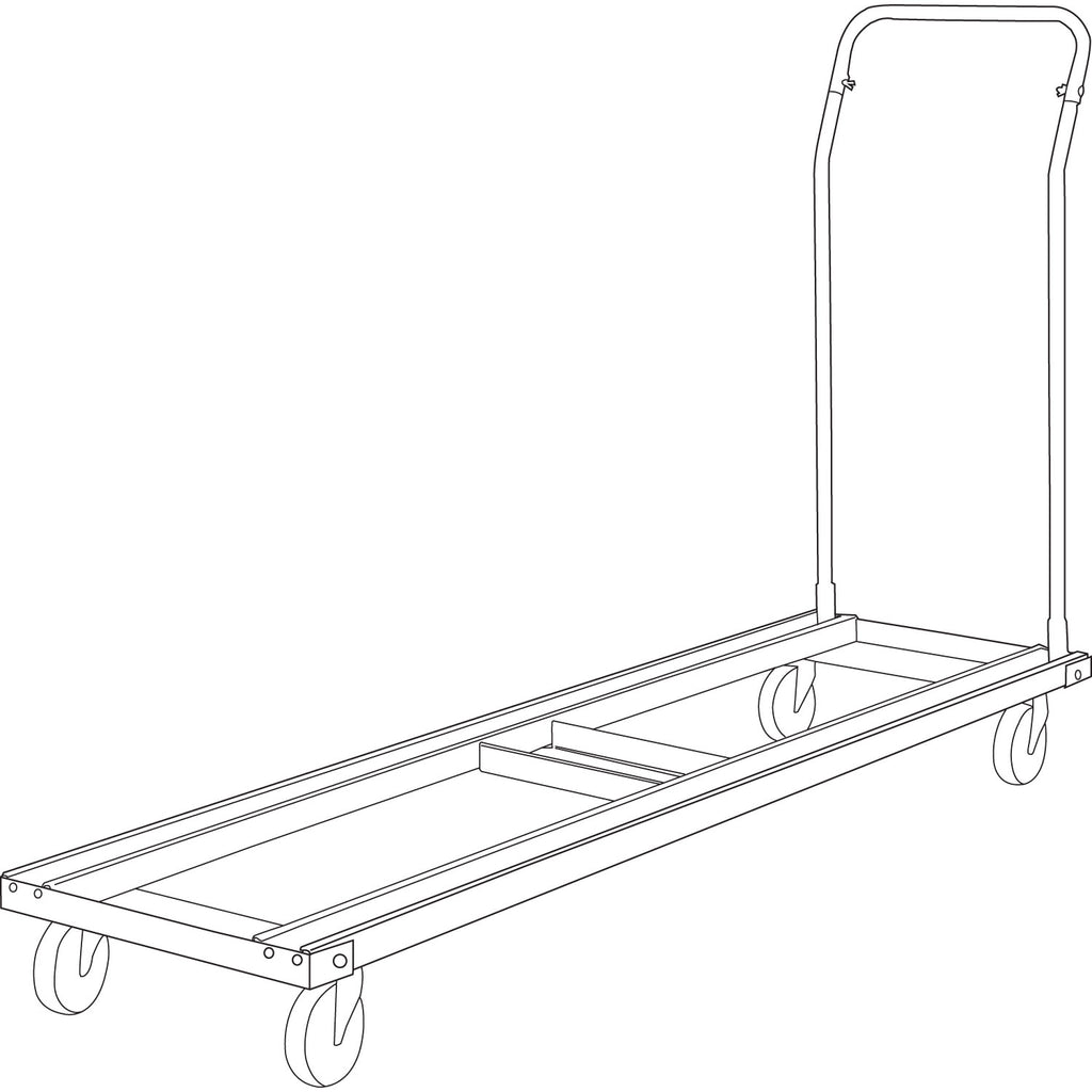 - Adjustable U-bar keeps folding chairs from falling over during transport. U-bar is removable for table storage.