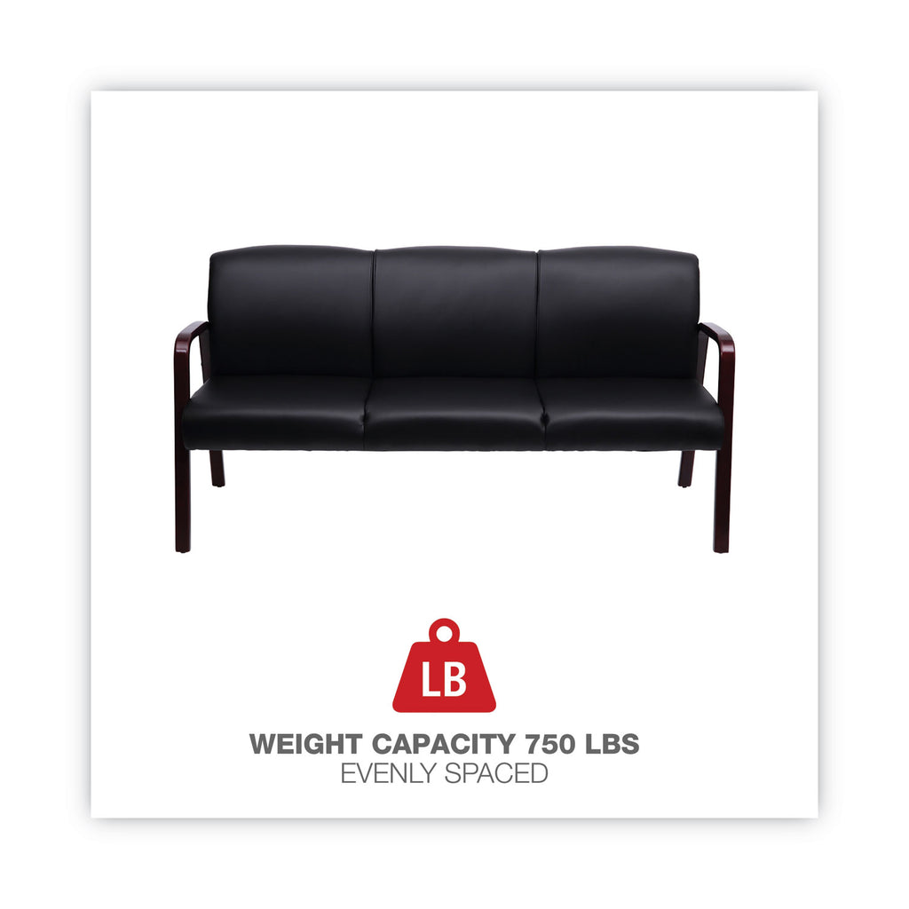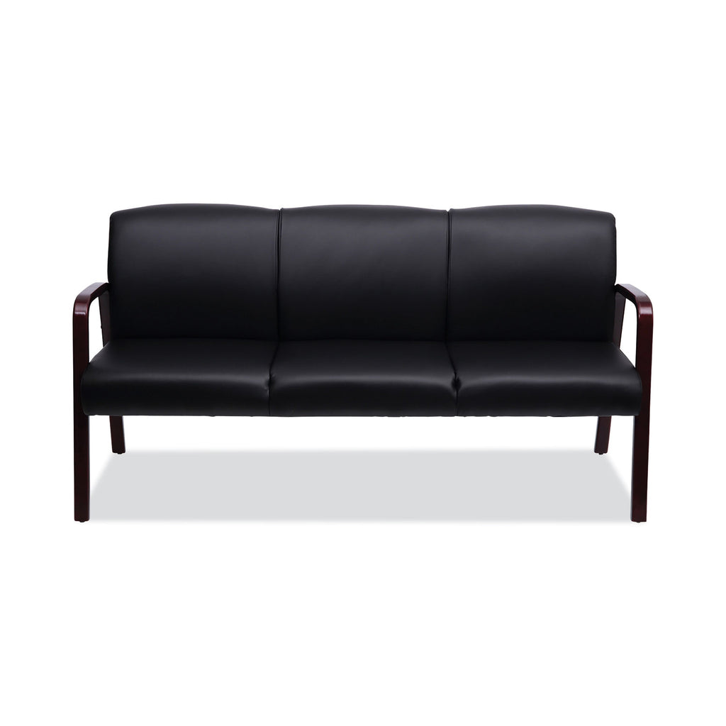 Sleek and modern style reception sofa makes a great stand-alone piece or as a grouping when configured with chairs, benches, and tables to create reception, lounge, conference, or waiting rooms. Attractive wood frame that wipes clean. A thick, cushioned seat and back perfect for dividing seating areas and keeping visitors appropriately distanced from one another. Leveling glides compensate for uneven floors.