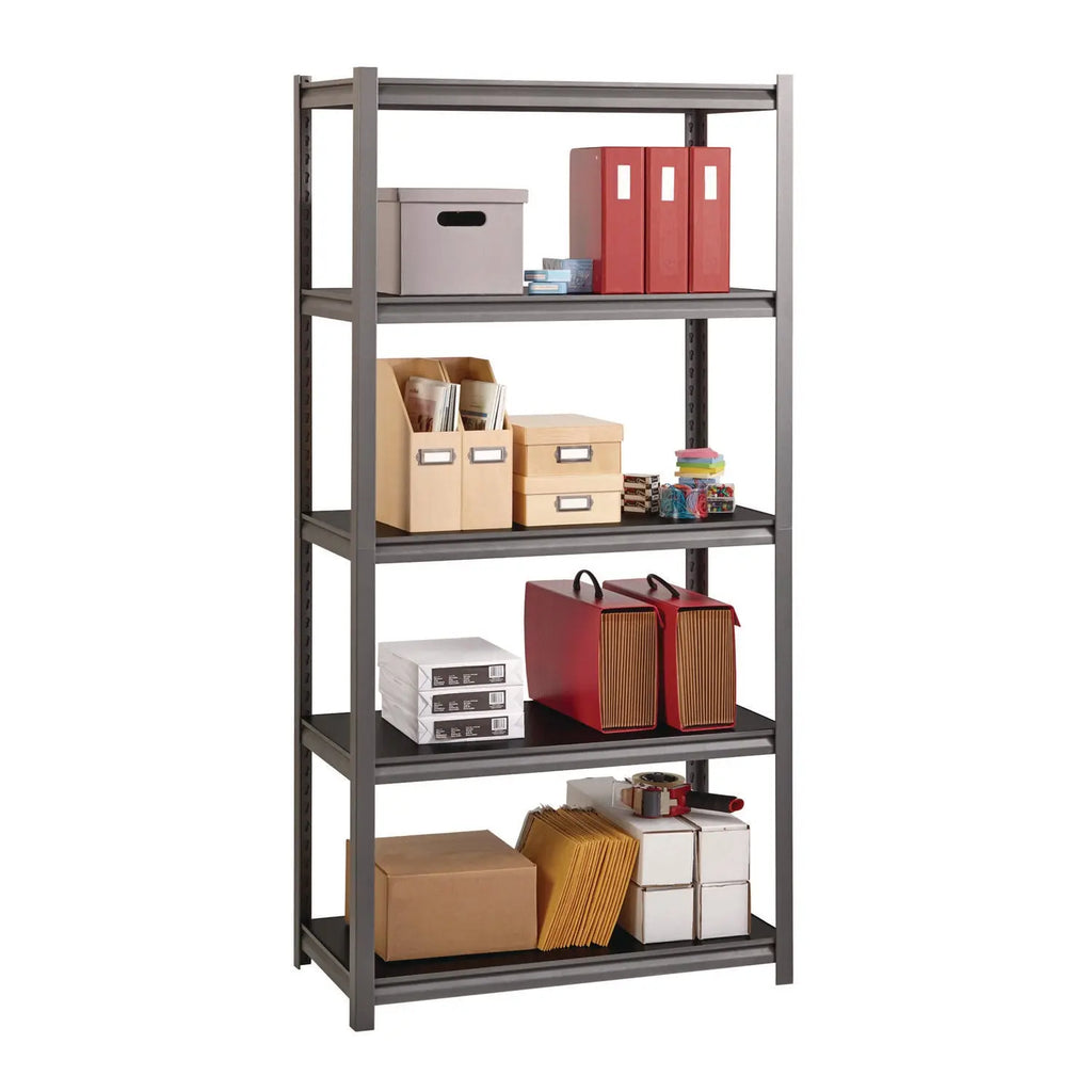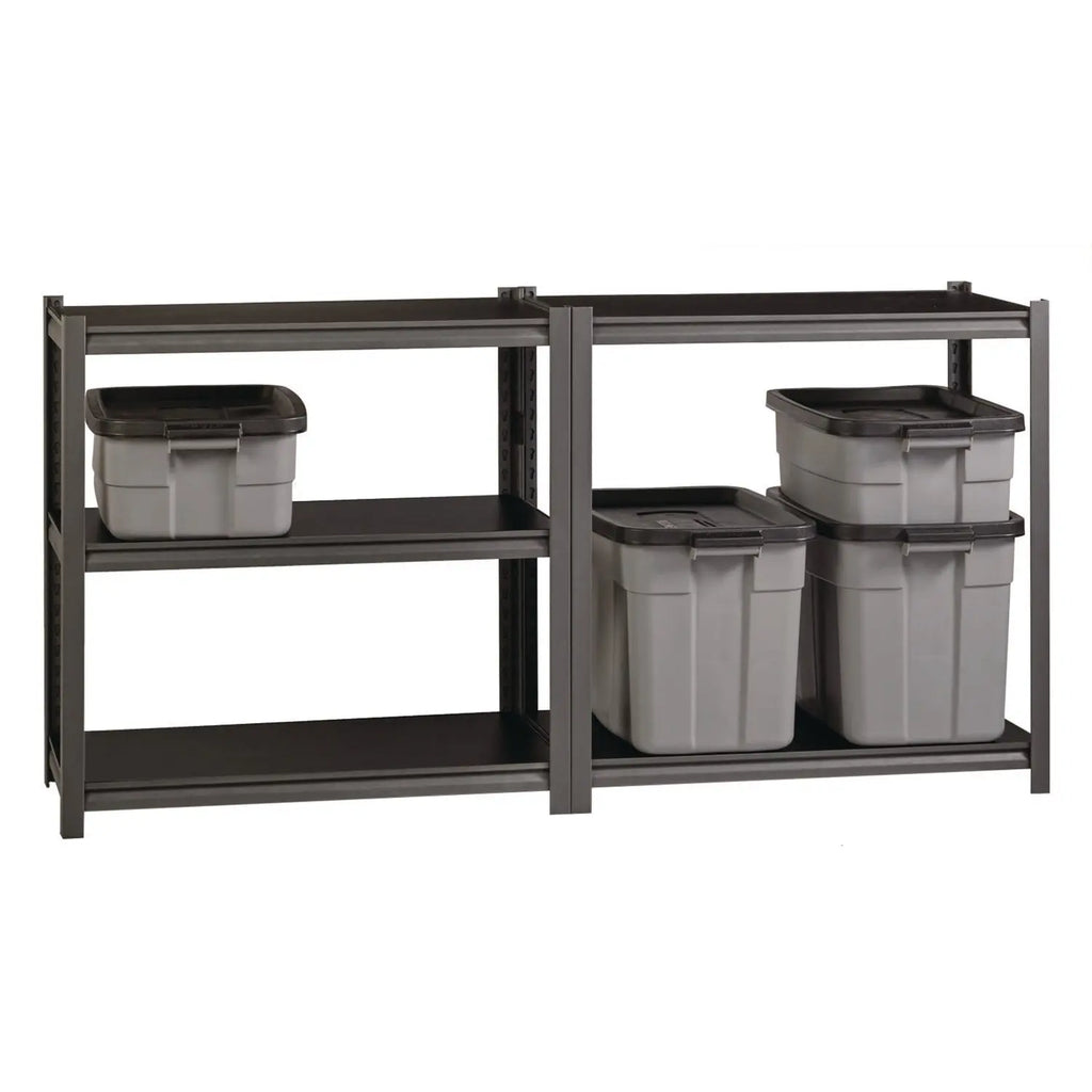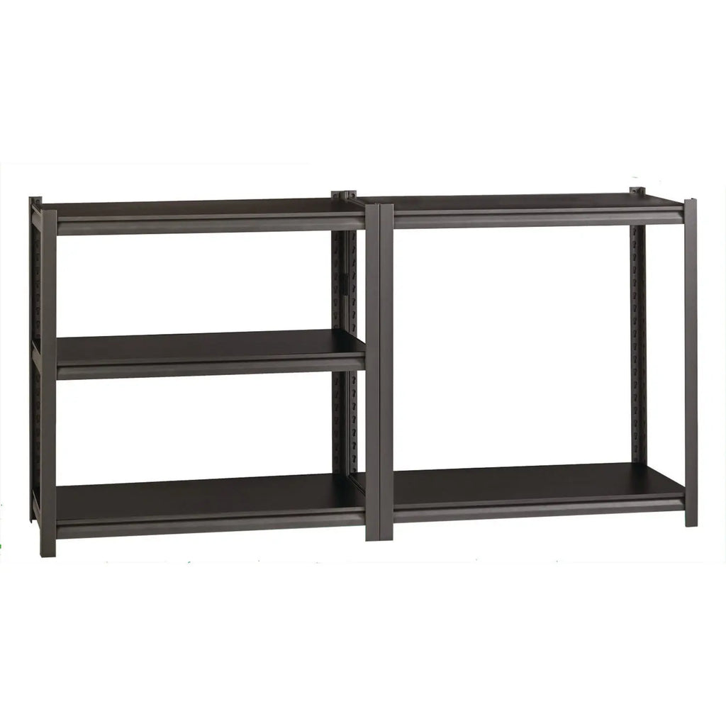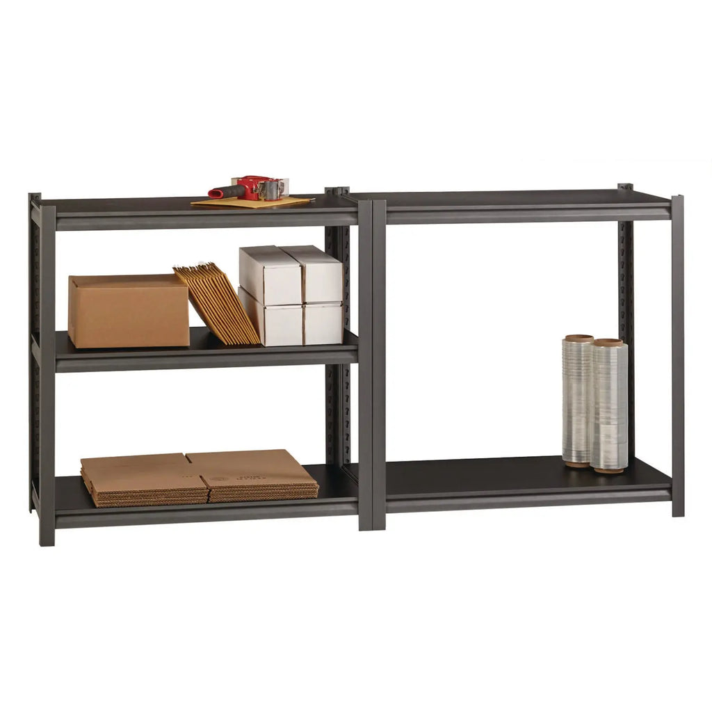This shelving is designed for heavy-duty use. The boltless design allows for quick and easy assembly. The powder-coated finish is rust resistant and durable. The shelving unit can be assembled either horizontally or vertically, depending on your storage needs. Each unit includes black laminate decking. Assemble with a rubber mallet in less than 30 minutes. Shelving is made of heavy-duty riveted steel construction.
