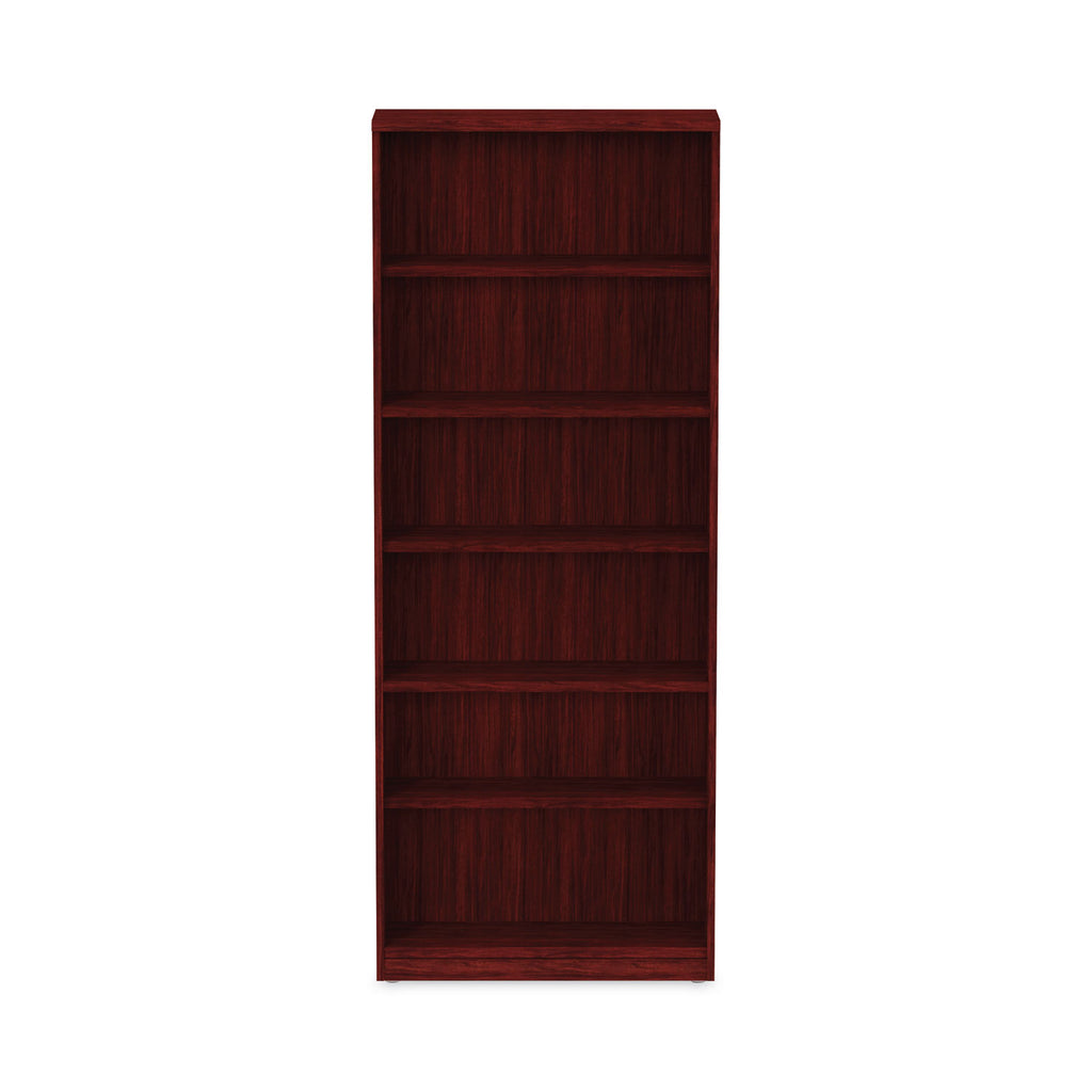 Contemporary design; woodgrain laminate construction. Commercial-grade side panels with protective 3 mm edge banding. 11.75" deep shelves. Top and bottom shelf are fixed, middle shelf is adjustable. Top panel is 14" deep for door installation. Tight, dowel, and cam-lock assembly.