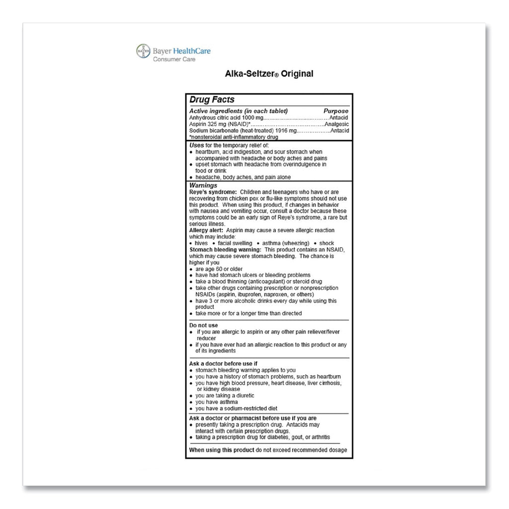Suffer no more—get fast relief of heartburn, upset stomach, acid indigestion with headache and body aches from this antacid and pain reliever. Effervescent antacid and pain is an easy-to-use solution for everyday digestive issues. Unlike other antacids, Alka-Seltzer® Original contains an analgesic for pain accompanied by heartburn and acid indigestion.