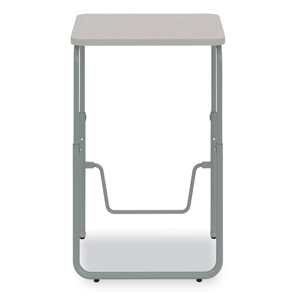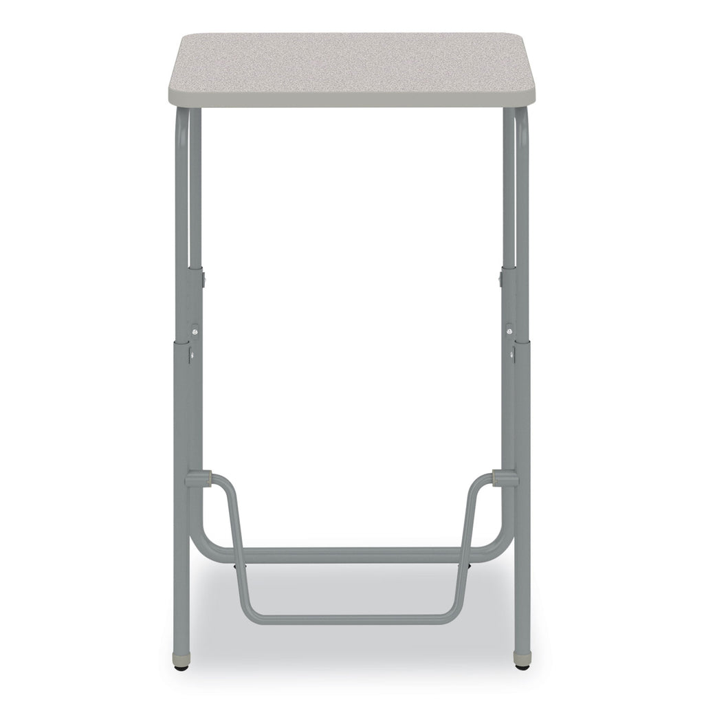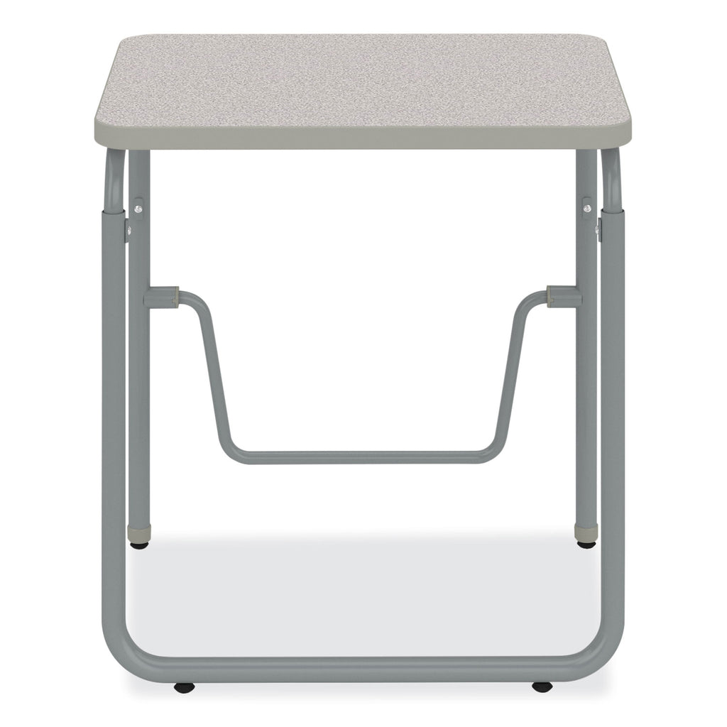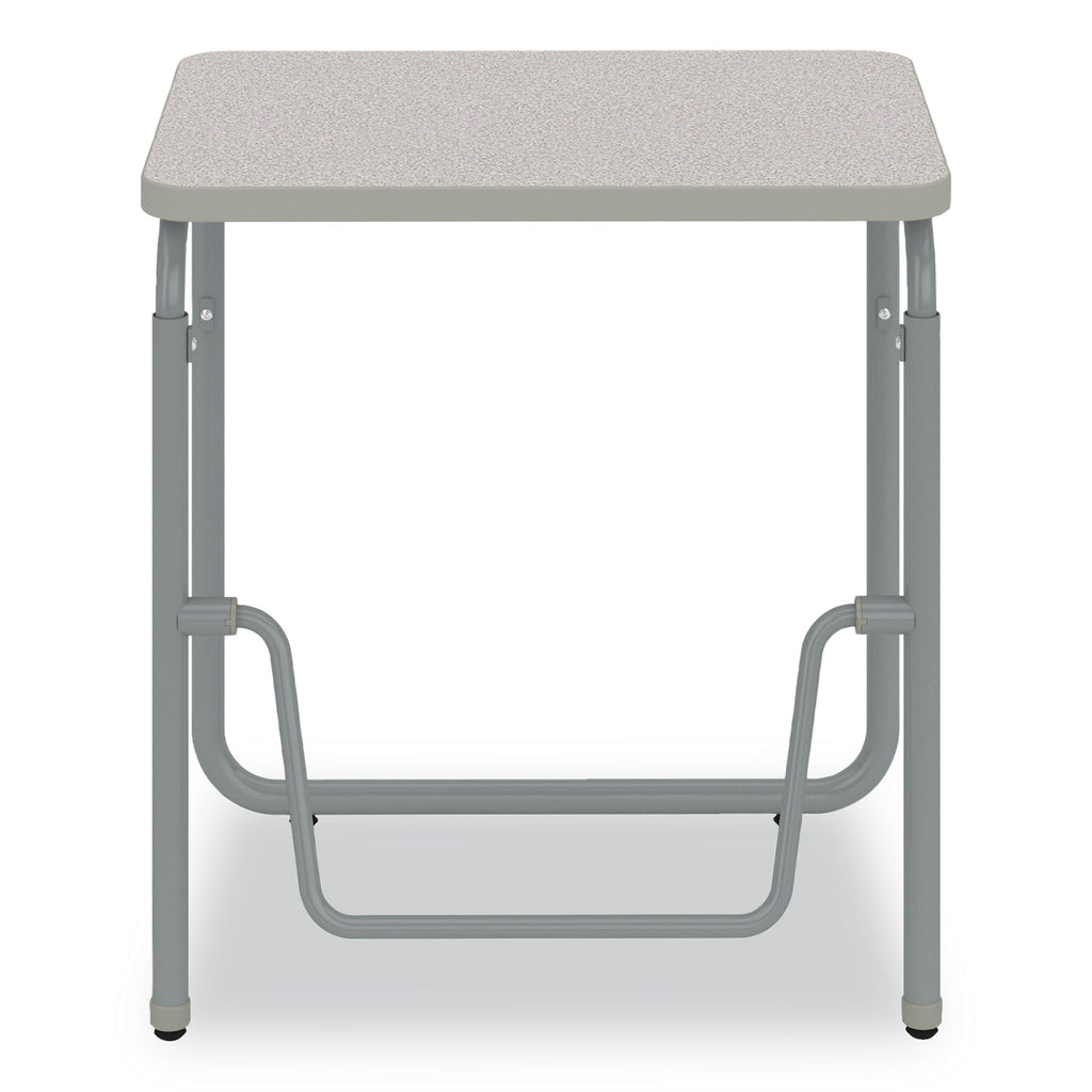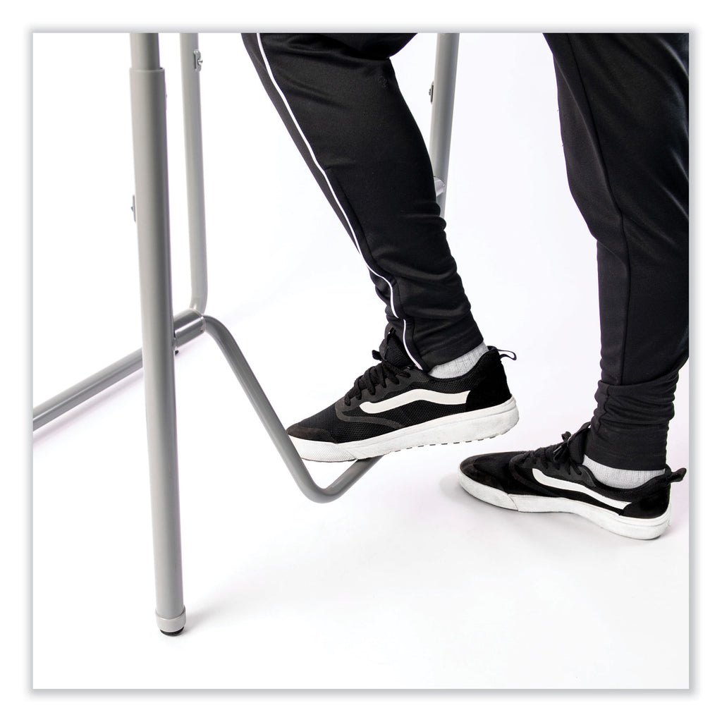 Encourage healthy movement and provide convenient storage with this height-adjustable student desk that features a high-pressure laminate top. This desk comfortably accommodates students of all sizes as they work or sketch ideas. A pendulum footrest allows students to redirect excess energy and continue to move, even as they sit, providing ergonomic support, increasing comfort, and promoting cardiovascular health. Great for boosting productivity and focus, this student desk has the added benefit of optional casters for better mobility throughout the classroom. Height adjusts accommodating students in 5th grade and up as well as adults at seated and standing heights.