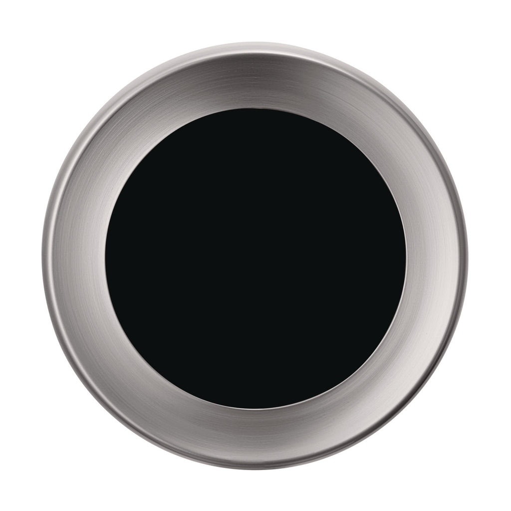 - Featuring a brushed silver finish with black handles along with black rings on both the top and bottom this sleek can adds a clean, modern look that will easily fit into any interior space.