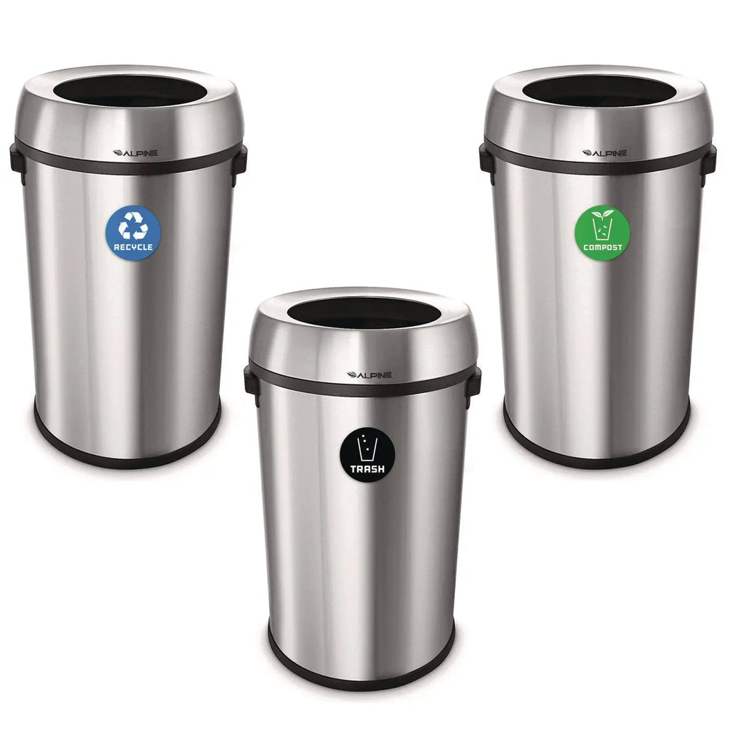 | Package Includes | (1) Recycling Bin with Open Lid; (1) Trash Bin with Open Lid; (1) Compost Bin with Open Lid; Labeling Stickers |