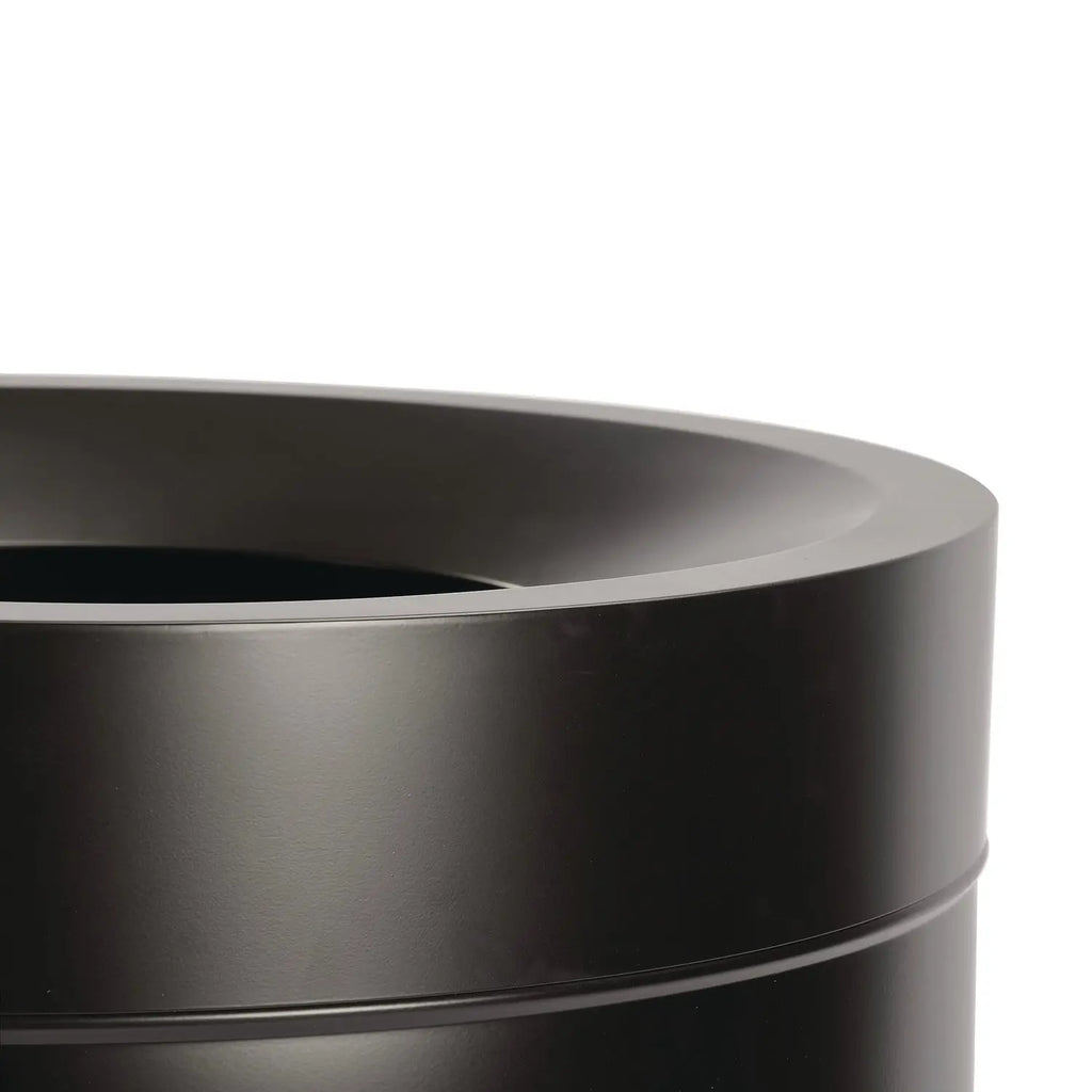 - The receptacle lids display a seamless design while concealing the trash bags.
