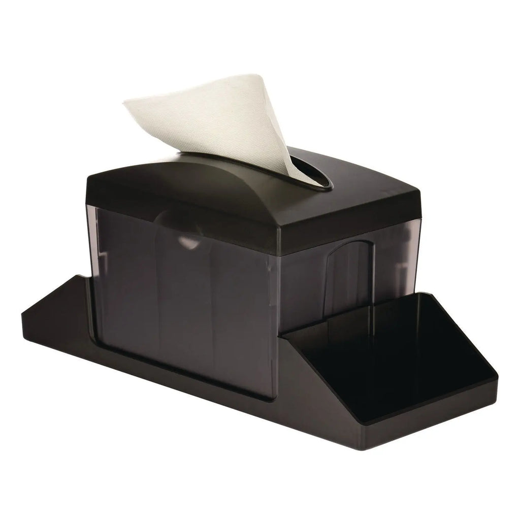 - Easy dispensing from any direction by way of its top-facing napkin slot.