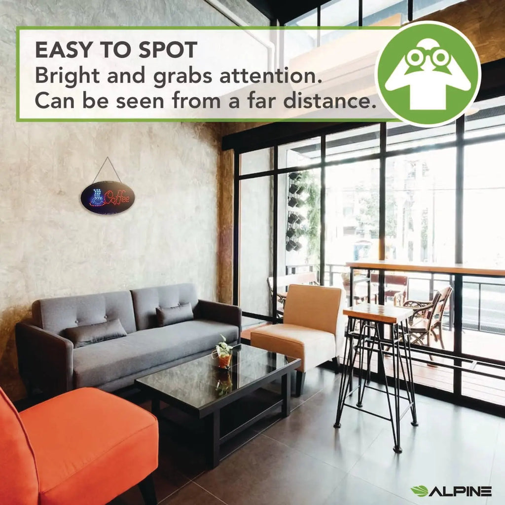 - Outshine your competitors with a Coffee Sign to improve visibility that with LED lights in red and blue, this black sign will definitely give your business a boost.