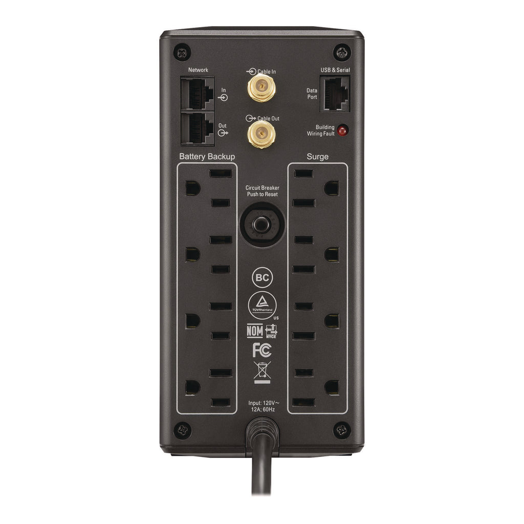 Provide backup power to modems, routers and other devices when electricity fails with this UPS compact tower. Dataline surge protection ports shield electronics from power spikes, and the energy management cuts power to peripherals if the master device shuts down. The LCD screen on this APC® Back-UPS Pro tower displays the estimated run time for connected devices.