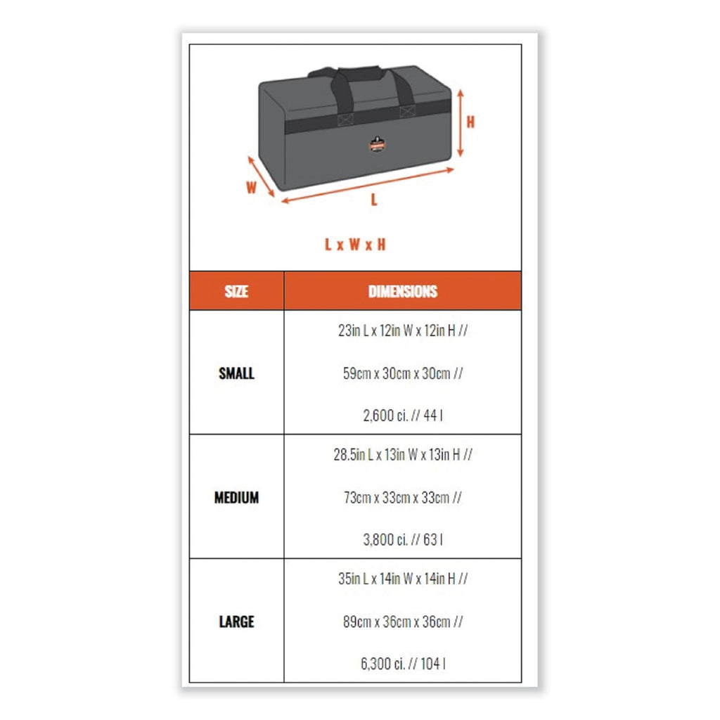 Easy to carry and helps organize everything you need for the workday or the weekend. Whether you use it as a way to store your equipment on the job, a gym bag, or as a carry-on duffel bag while traveling, you can rely on this utility duffel bag to house and protect your valuables. This lightweight, yet super durable gear bag is made with 600D nylon material to withstand wear and tear for long-lasting performance. Keep your essentials clean and dry with the reinforced water-resistant backing. Easily carry your gear in comfort with the large heavy-duty ribbed webbing handles and the adjustable padded shoulder straps. A large open main compartment fits all your gear with easy loading and unloading, so nothing is left behind. There are two accessory pockets to keep small items easily accessible.