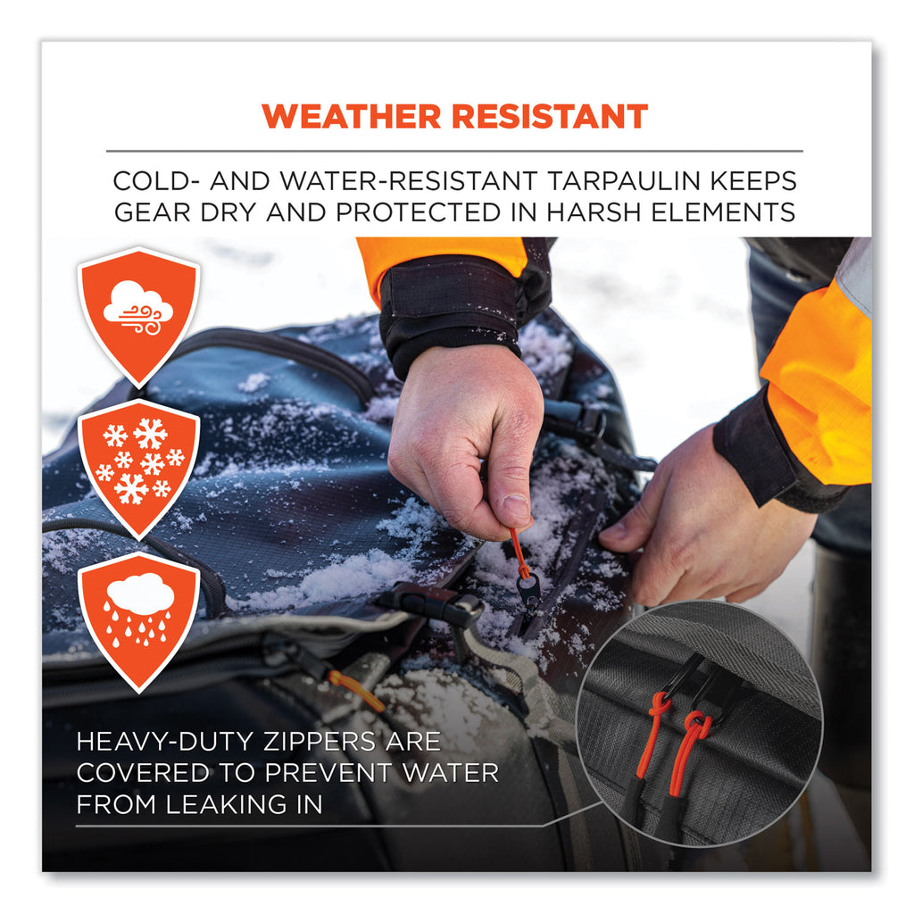 - Heavy-duty cold- and water-resistant tarpaulin with 600D coated polyester keeps gear dry and protected in wet or snowy conditions.