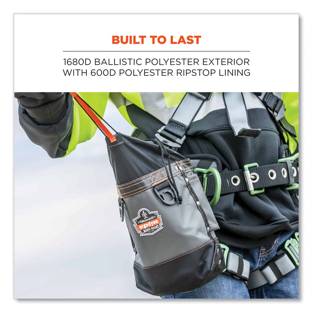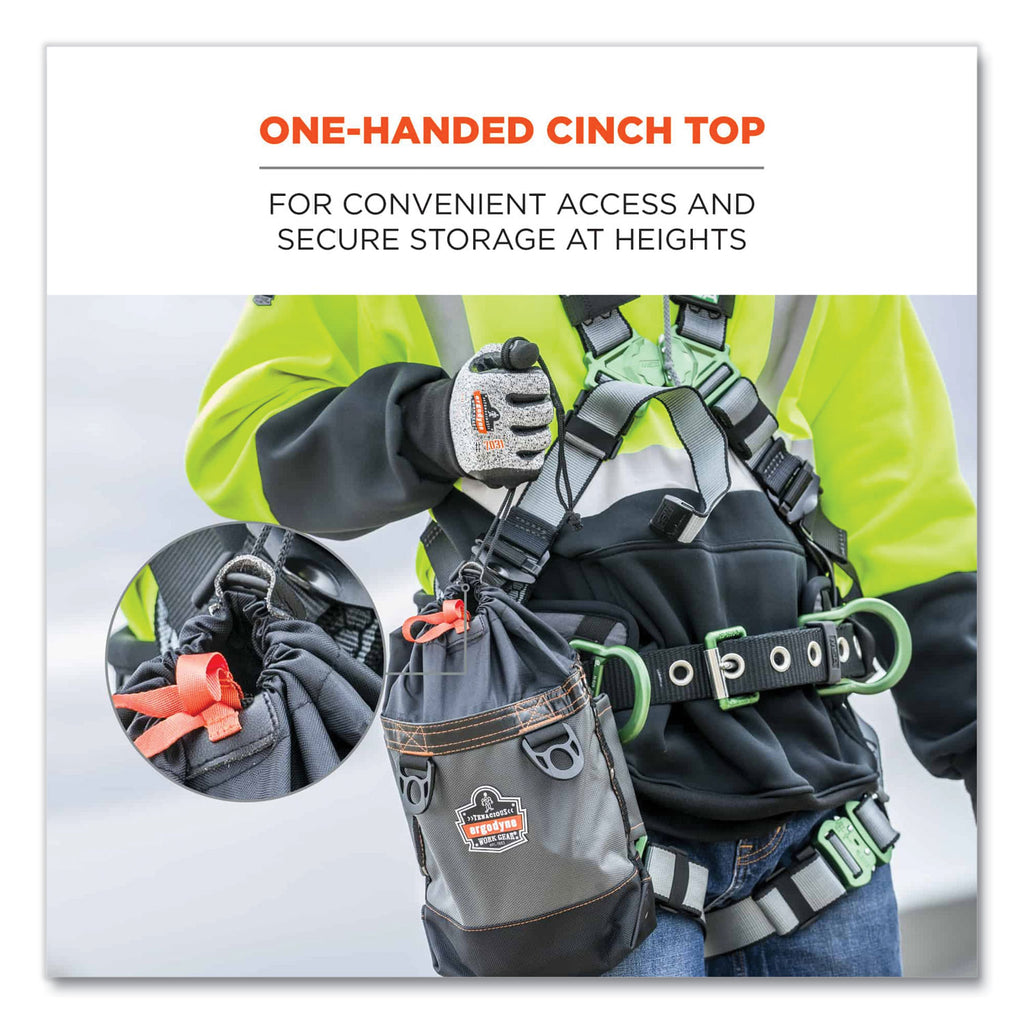 - One-handed cinch top with drawstring closure for convenient access and secure storage of tools while at heights.