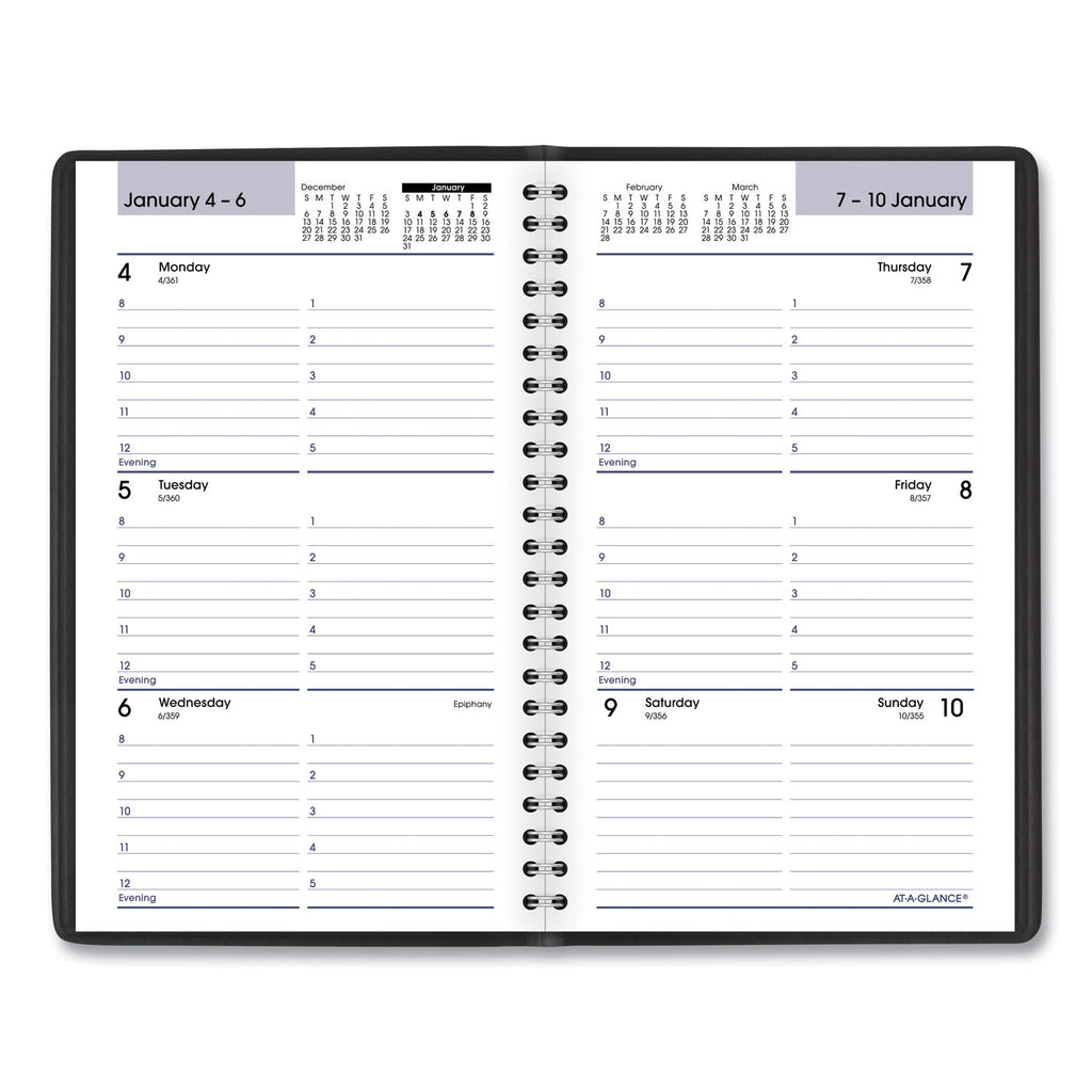 - One week per two-page spread; block-style appointments; past, current and two future months reference.