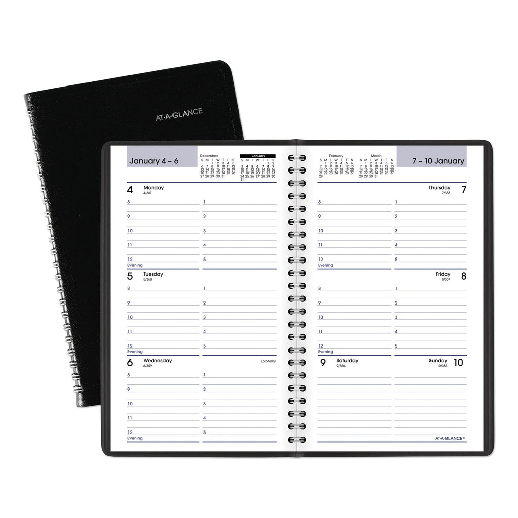 - Planner has a black cover and twin wire binding for enhanced durability.