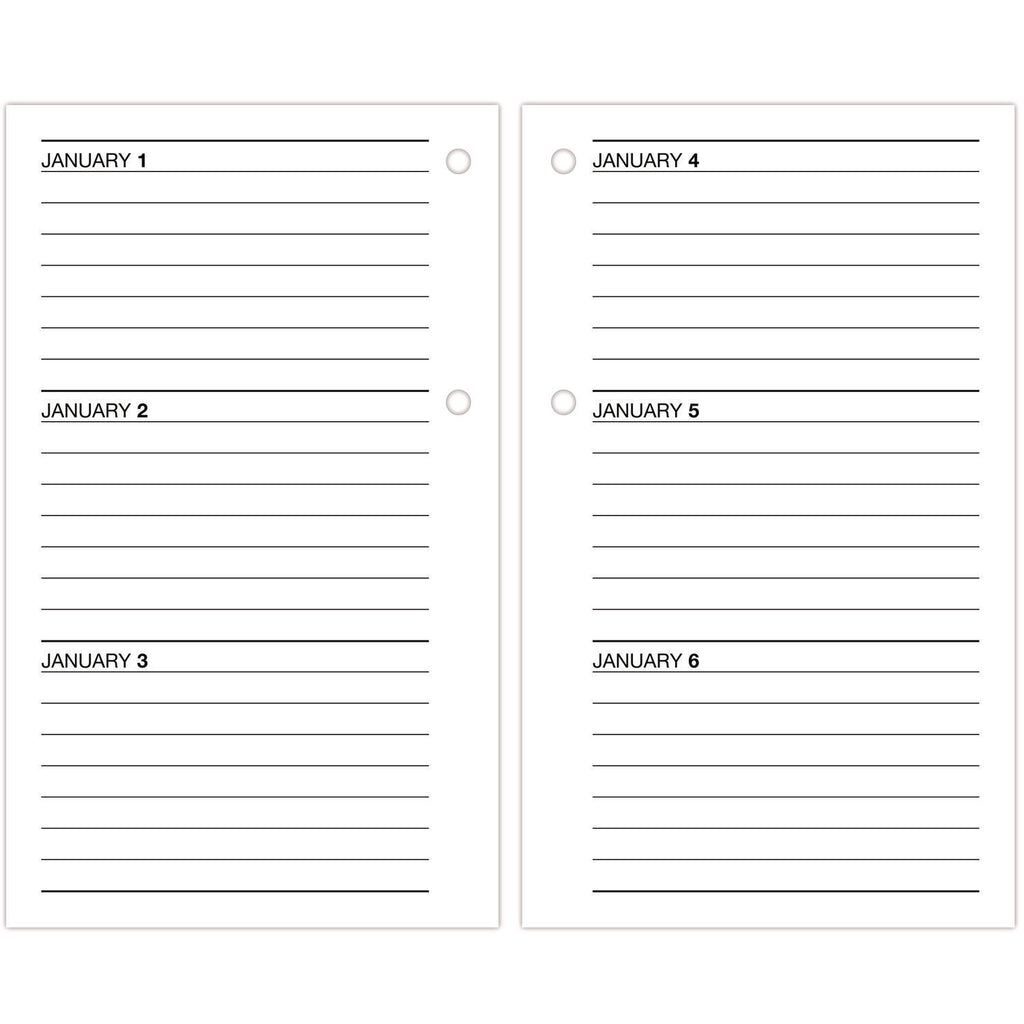 - Loose-leaf, two-hole punched pages for E17-style calendar bases.