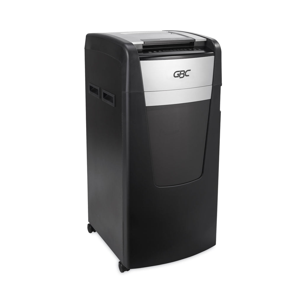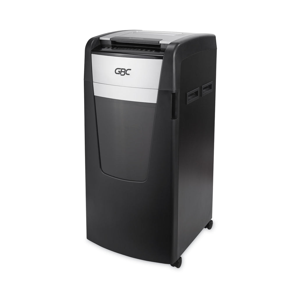 Stack up to 750 sheets in the feeder for automatic shredding or manually feed up to 15 sheets at once. Micro-cut (P-5) shred style safely shreds confidential or sensitive documents. Runs ultra-quietly to help minimize noisy disruptions in large offices. Powerful induction motor with 240-minute continuous run time and oversized 37 gal bin let you shred longer without stopping. A lockable feeding tray provides additional security to your shredded documents. Auto shreds documents, paper clips and staples, while credit cards must be manually inserted.