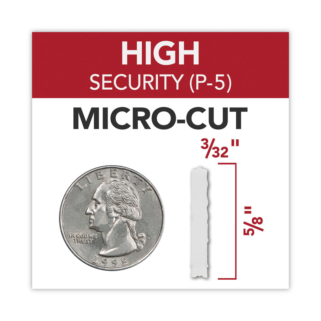 - Micro-cut (P-5) shred style safely shreds confidential or sensitive documents