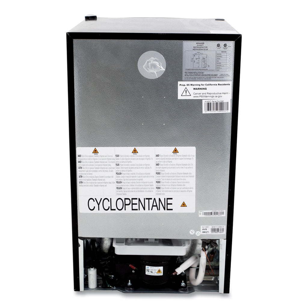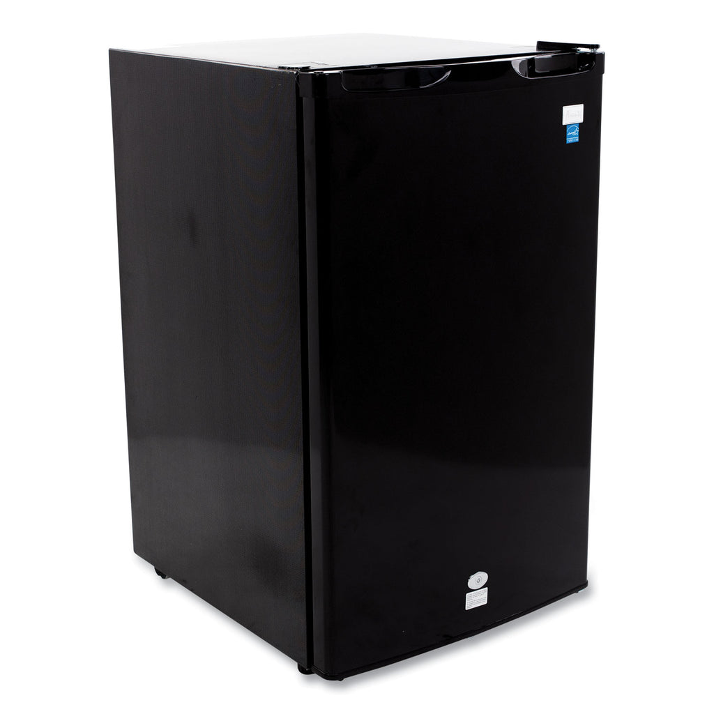 Keep your snacks and favorite beverages close by in the compact, 4.4 cubic foot refrigerator from Avanti. The perfect lockable mini fridge for the office, dorm, man cave, she shed, bar, bedroom, or anywhere you need a little extra refrigerator space.