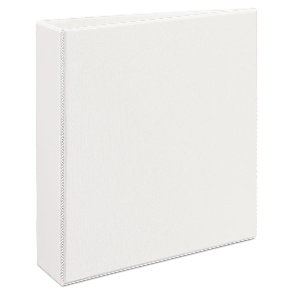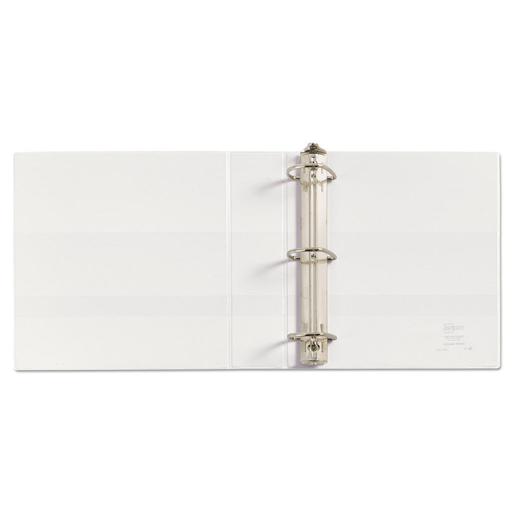 EZD® rings provide an increased capacity when compared to the same size slant or round rings. Tear-resistant DuraHinge® design is stronger and lasts longer. DuraEdge® feature makes the sides and top more pliable, providing greater split resistance. Deeply textured film offers a smoother finish and features a linen pattern for a high-quality look and feel. Durable construction is ideal for frequent referencing. Organize and secure papers within four interior pockets. Pages lie flat with back-mounted rings. Customize your binder with free templates and designs at Avery® Design & Print Online.