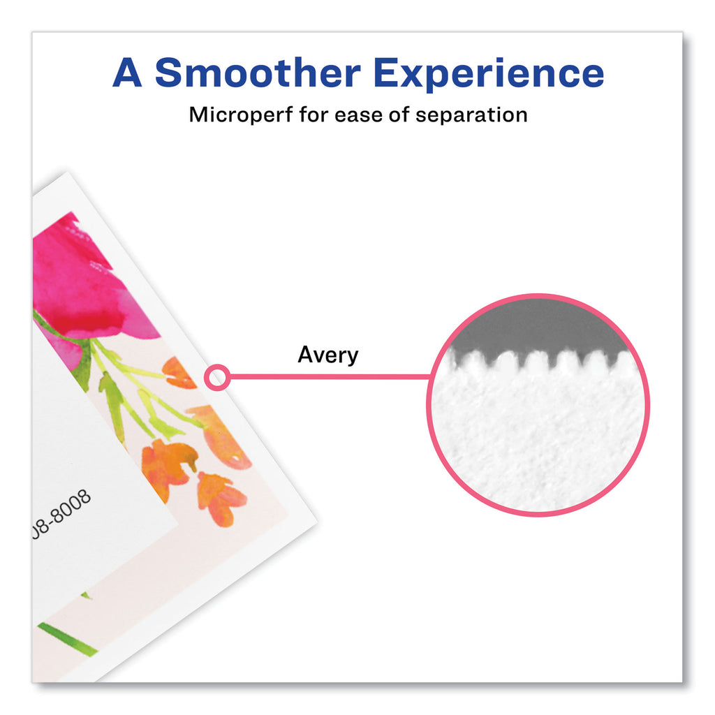 - Ultra-fine perforations let you separate cards cleanly and easily for a professional appearance and are pre-scored for easy folding.