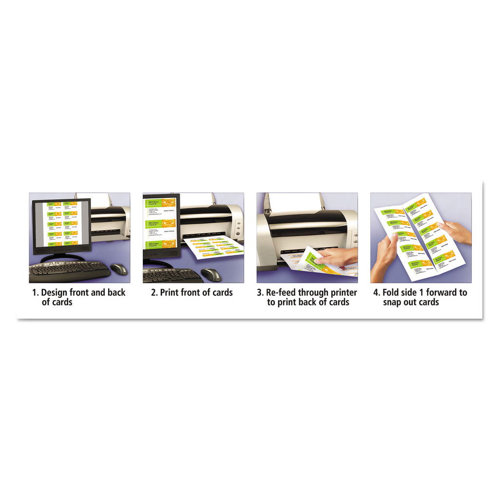 Design and print professional-looking business cards. Proprietary Clean Edge® technology ensures that cards snap apart with smooth edges. Print on both sides. Easy to customize with free designs and templates from Avery Design & Print. 8.5" x 11" sheets for laser or inkjet printers.