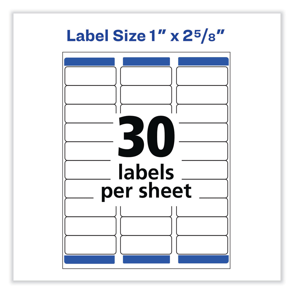 Labels stick, stay and remove cleanly without leaving a residue! Ideal for containers, boxes, shelves and more. Adheres to smooth surfaces including paper, cardboard, plastic, wood, glass and metal. Easy to customize using free Avery® designs and templates. For laser and inkjet printers.
