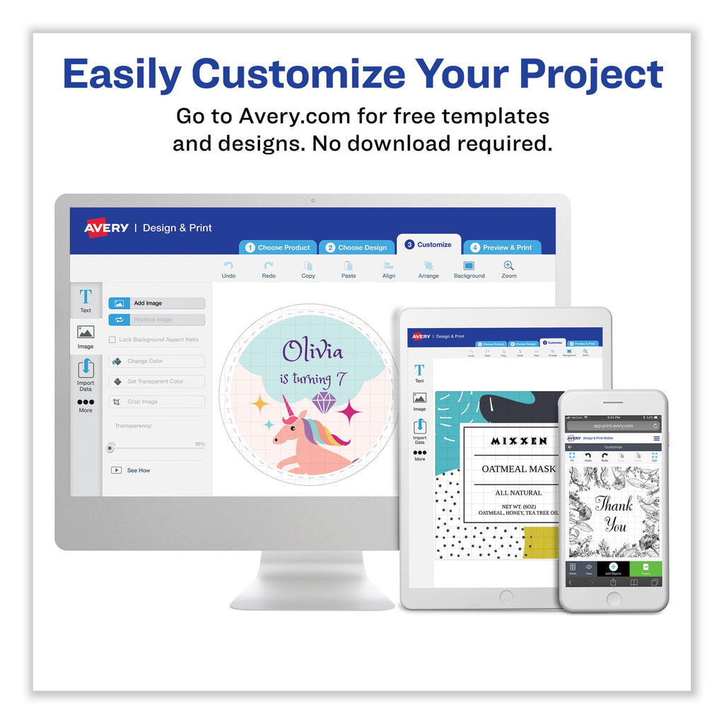- Easy to customize using free Avery® designs and templates.