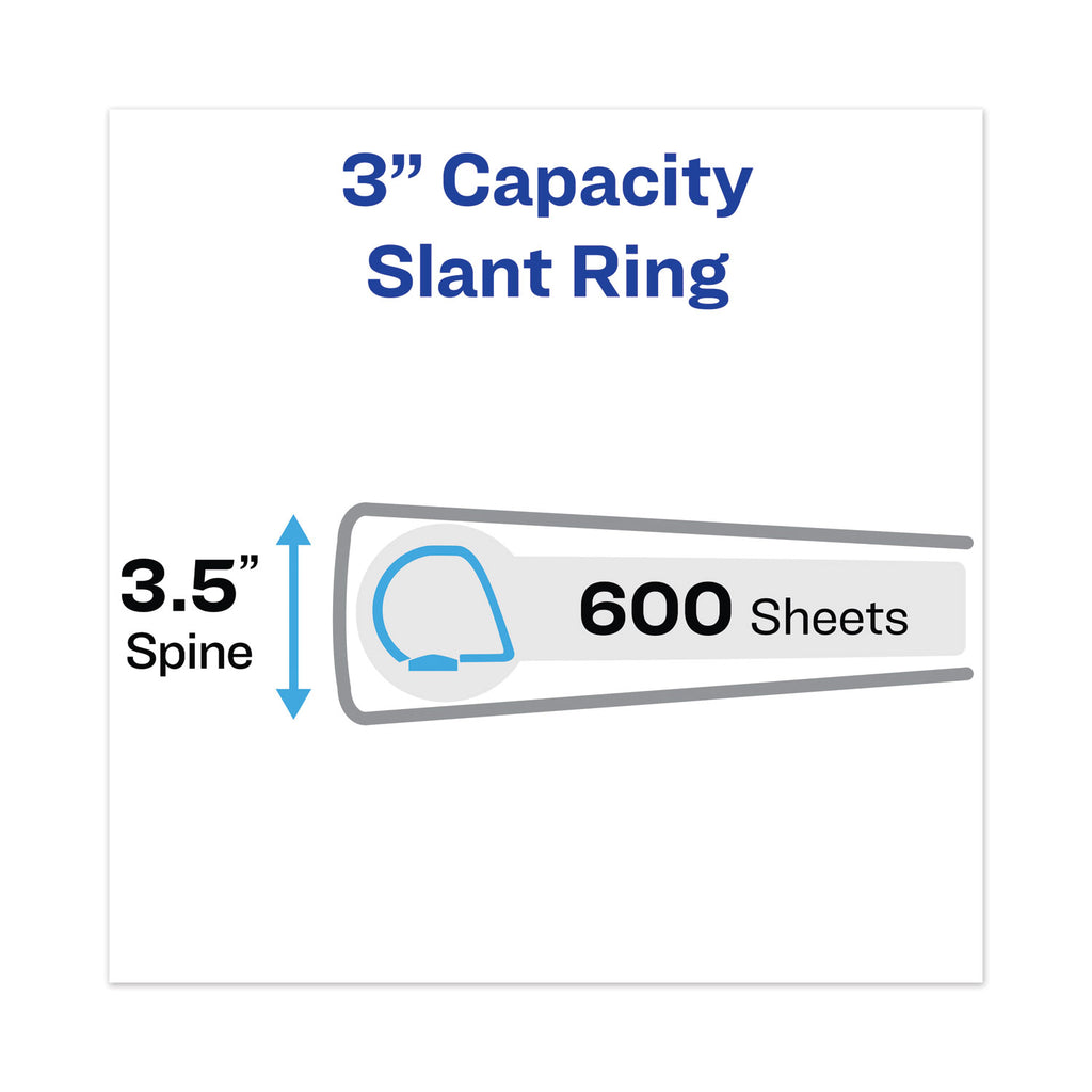 TouchGuard™ binders are treated with an antimicrobial agent to protect the binder from the growth of mold, mildew and bacterial odors. Easily customize the clear cover and spine using free templates and designs from Avery® Design & Print. Slant rings have a higher page capacity compared to same size round rings. Non-stick polypropylene material prevents toner transfer. Four clear interior pockets for increased storage. Made with 100% recycled chipboard. Holds 8.5" x 11" documents.