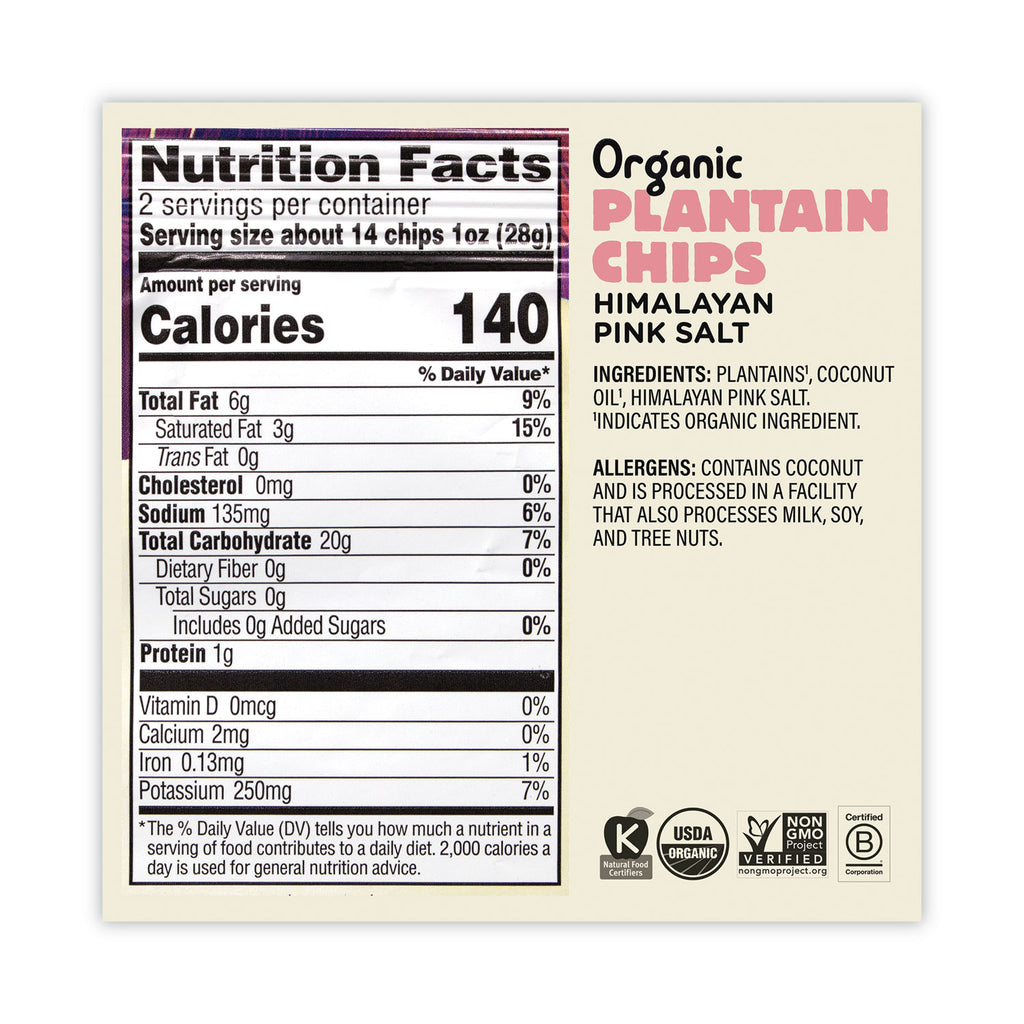 These organic plantain chips in pink sea salt flavor are perfect combination of salty and sweet. Ingredients are simple and a healthy alternative to traditional potato chips. Enjoy when snacking on-the-go.