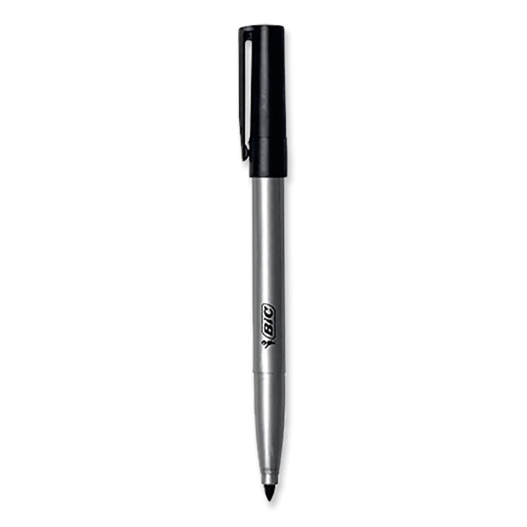 Long-lasting fine permanent markers have sleek gray barrels made in part of recycled plastic. The paperboard used in this packaging is made up of entirely recycled materials. The bold ink is perfect for any and all projects. It's fine, precision bullet nib is great for creating vivid marks on glass, metal, photos, plastic and much more. Even better, these markers won't dry out for two weeks if they're left uncapped.