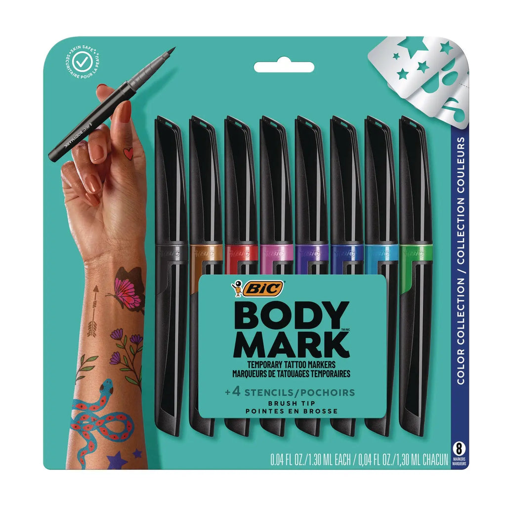 Put your creativity on display with these temporary tattoo markers. If you're not comfortable drawing freehand, use the included stencil plates as a direct, one-to-one guide or simply as a jump-off point. Cosmetic-quality, washable ink is designed specifically for the skin. Fast-drying, smudge-free and water-resistant: ideal for cosplay, costume parties, sporting events and more.