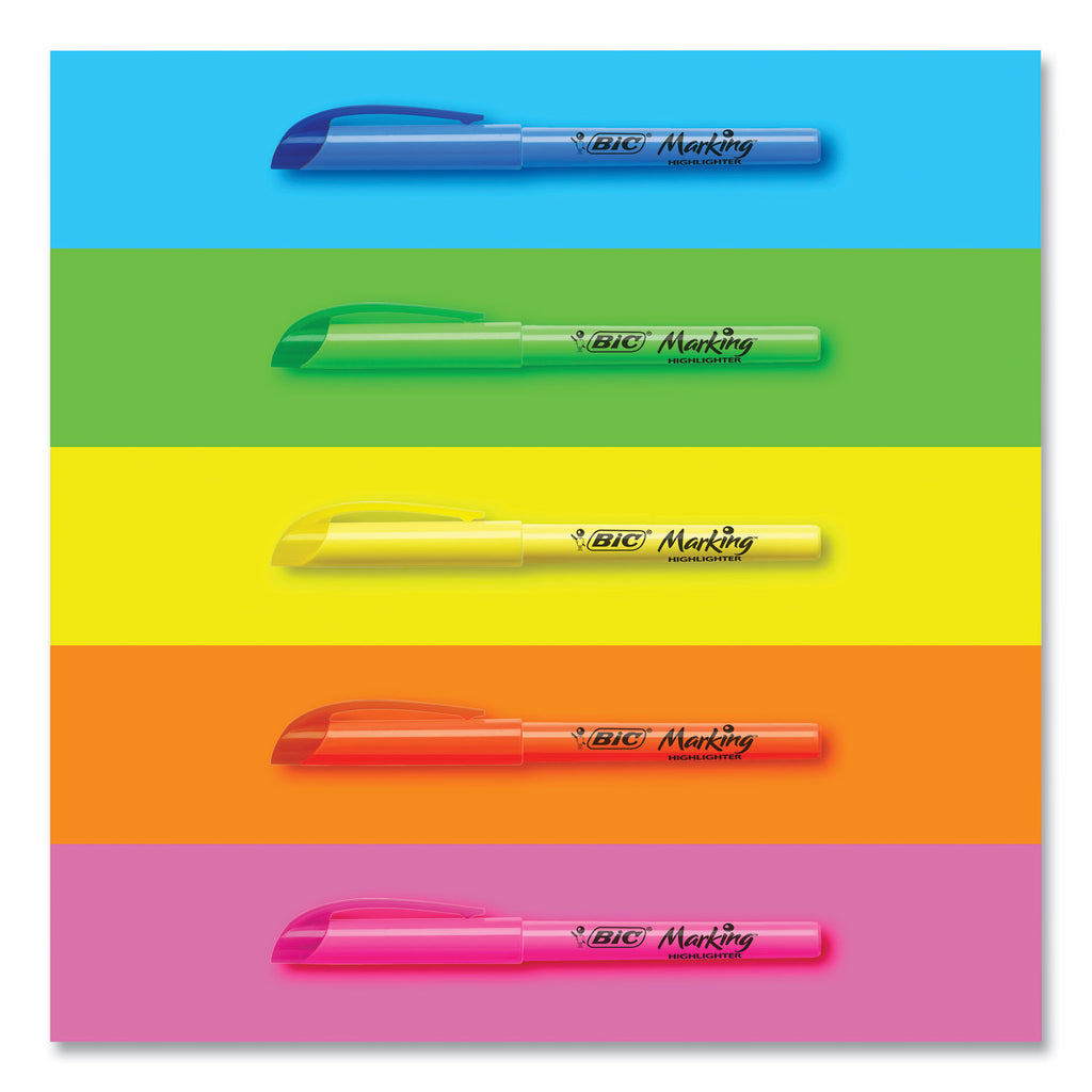 Convenient pen-shaped design and super-bright fluorescent ink. Chisel tip is ideal for both broad highlighting and fine underlining. Won't dry out if the cap is left off for eight hours.