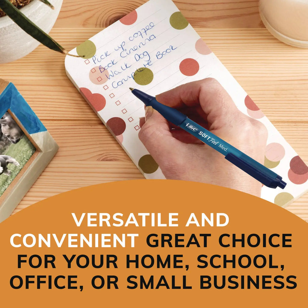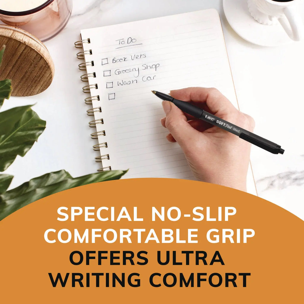 Retractable ballpoint features a unique, Soft Feel® barrel for ultimate writing comfort and a special no-slip grip for comfortable all-day use.