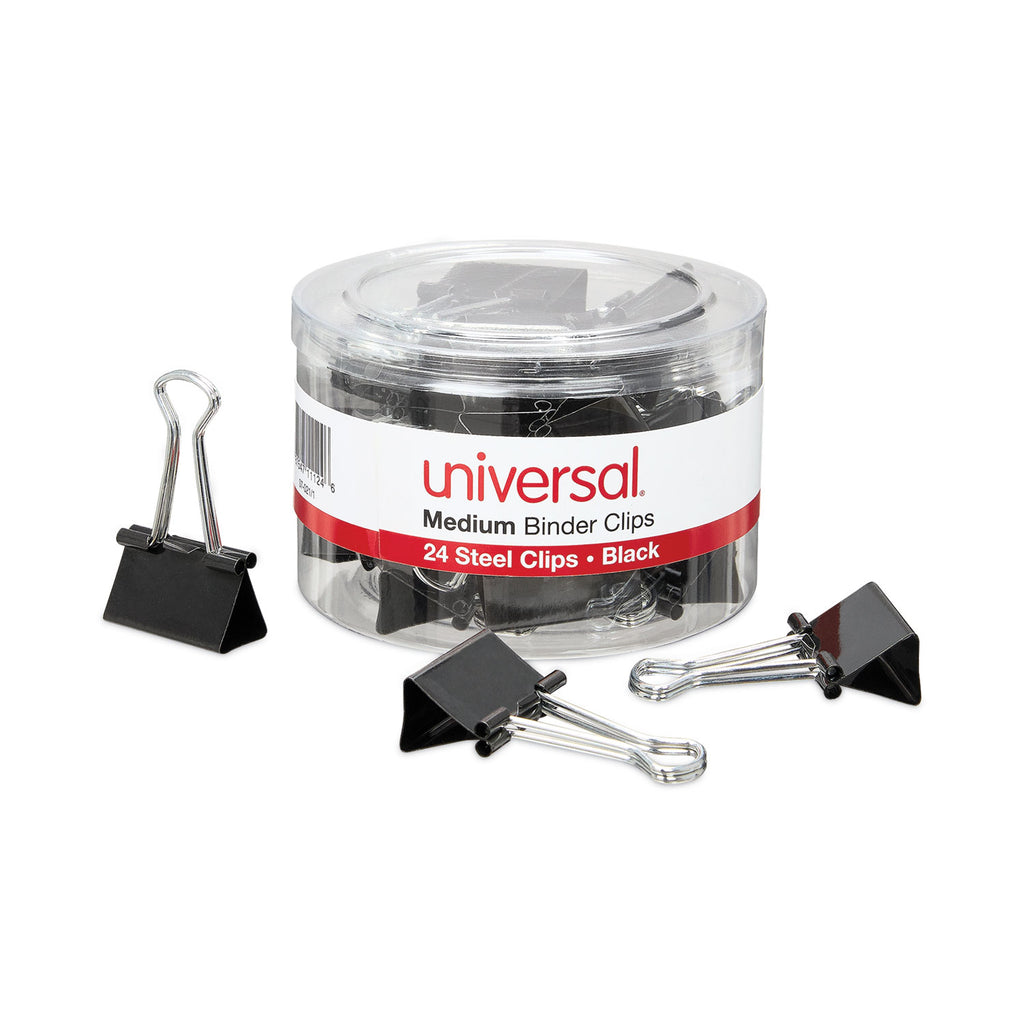 Ultra-efficient binder clips feature handles that can be hung, folded flat against clipped material, or removed for permanent binding. Efficient triangular design provides optimum strength and compression.