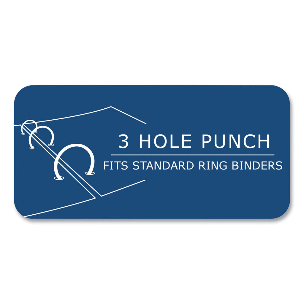 Made from heavyweight 65 lb recycled paper. Contain a pocket on each side, great way to store things within your binder. Pocket measures 11" x 9" and is three-hole punched to fit securely in your binder.