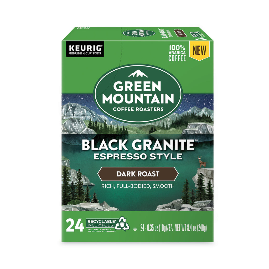 Take to the mountains from the comfort of your kitchen with Green Mountain Coffee Roasters® Black Granite™ Espresso Style. Rich and full-bodied, with sweet, smoky notes unifying the flavors of dried fruit and toasted nuts, our espresso-style coffee is as powerfully strong, profoundly smooth, and distinctively dark as the name implies. Each sip is an exploration of expertly crafted beans, roasted to perfection.