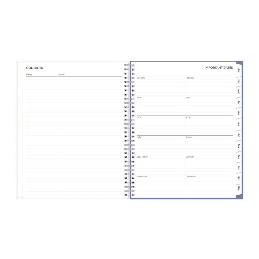 - Durable coated monthly tabs and twin-wire binding.