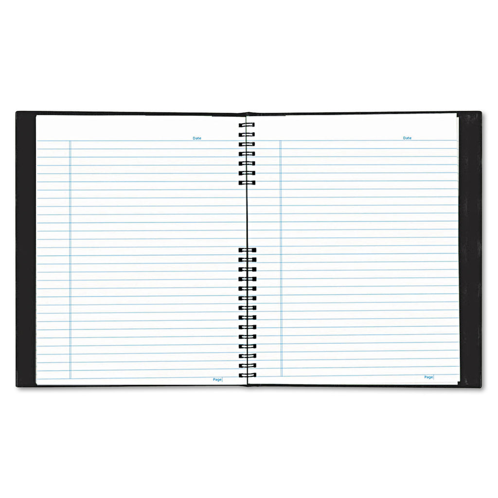 Durable hard cover offers increased writing stability. Twin-wire binding allows book to lie flat when open. Includes self-adhesive tabs to customize index, cover and spine. Microperforated pages. Double-sided pocket.