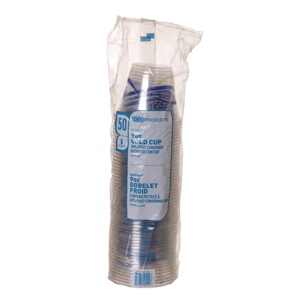 Choose these sturdy and attractive cold cups. Made, in part, of recycled PET bottles. Recycled info is detailed directly on the cup.