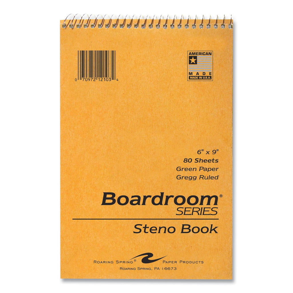 Steno notebook. Smooth 15# writing paper is Gregg ruled with a red center line. Covers are printed on a 24 pt kraft board. Wire ends are coil-locked for snag-proof performance.