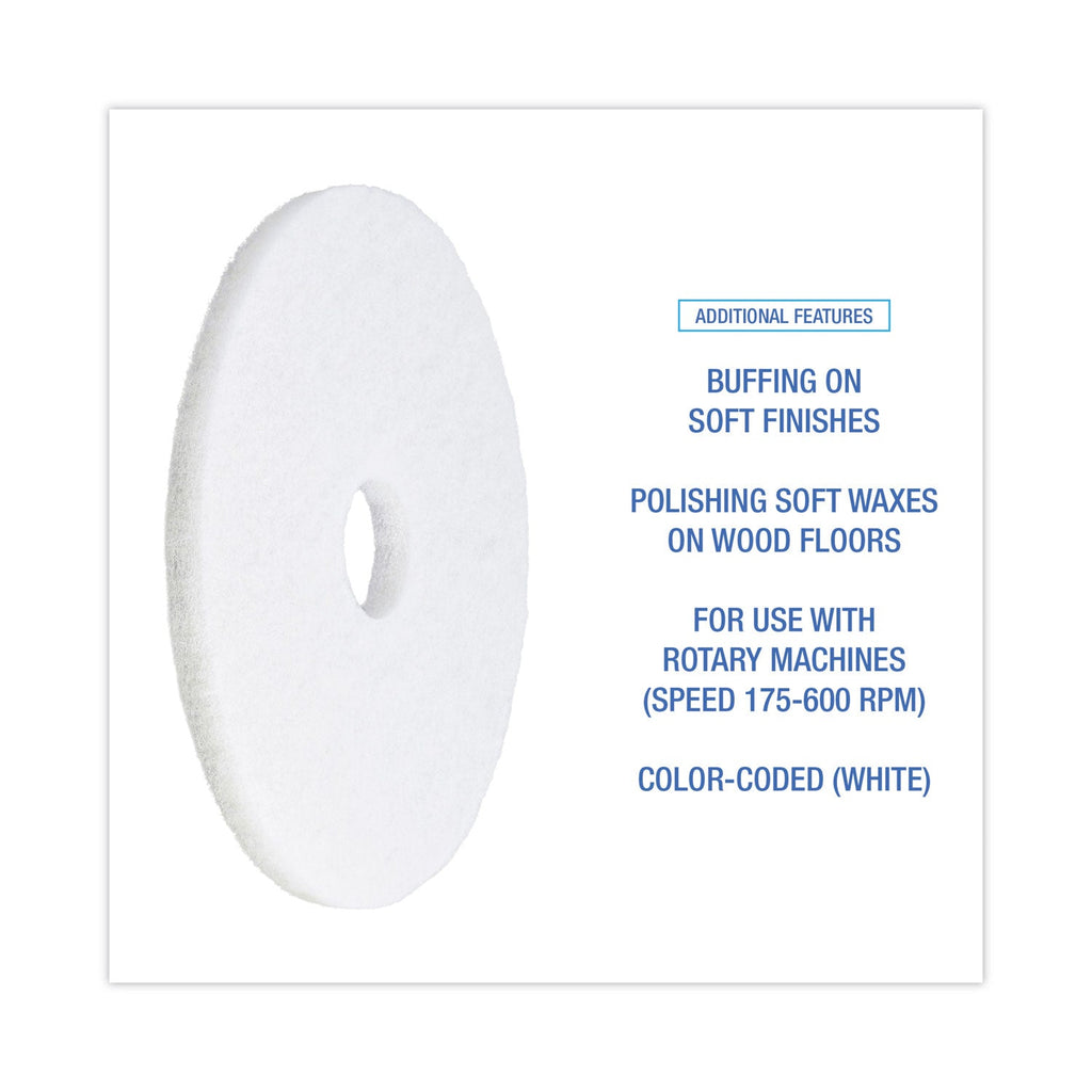 Take your soft finish floors to the next level with a polishing floor pad that attaches to a rotary machine. Create a smooth and protective finish by using the floor pad to polish and apply protective treatment. Value product that's ideal for buffing very soft finishes or polishing soft waxes on wood floors. Color-coded for easy job identification. For use with a rotary machine (Speed of 175 to 600 RPM).