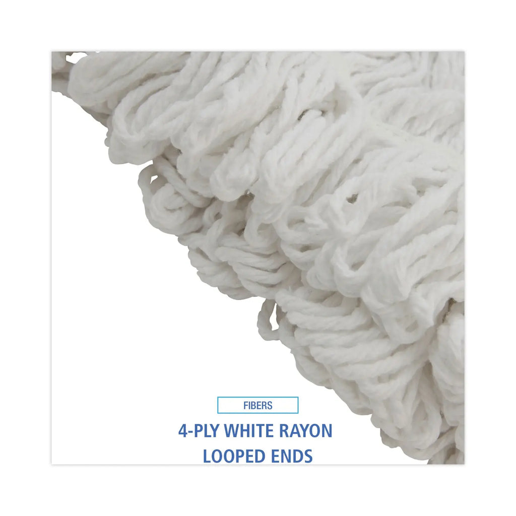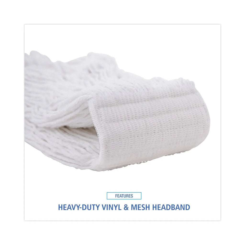 Thee mop heads are constructed from standard, four-ply, natural yarn for a quality mop head. The looped end design sheds less lint, reduces fraying and unraveling. The durable, double-sewn tailband prevents tangles and provides more floor coverage on a variety of floor types. The heavy-duty, five-inch, vinyl mesh headband securely holds full-weight, premium fiber strands. Designed for use with clamp-style or gripper-style mop handle (sold separately).