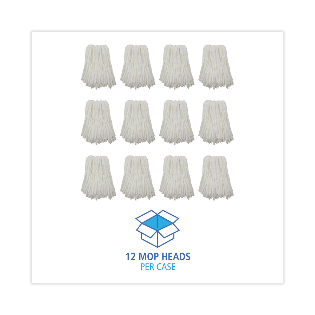 Reliable, white rayon and polyester blend fiber mop that produces less lint than traditional cotton mops. The synthetic heads provide greater absorption than cotton and are easier to wring out, with less unwanted material in waste stream. Each mop is individually packaged to preserve cleanliness and requires no break in. Handle sold separately.
