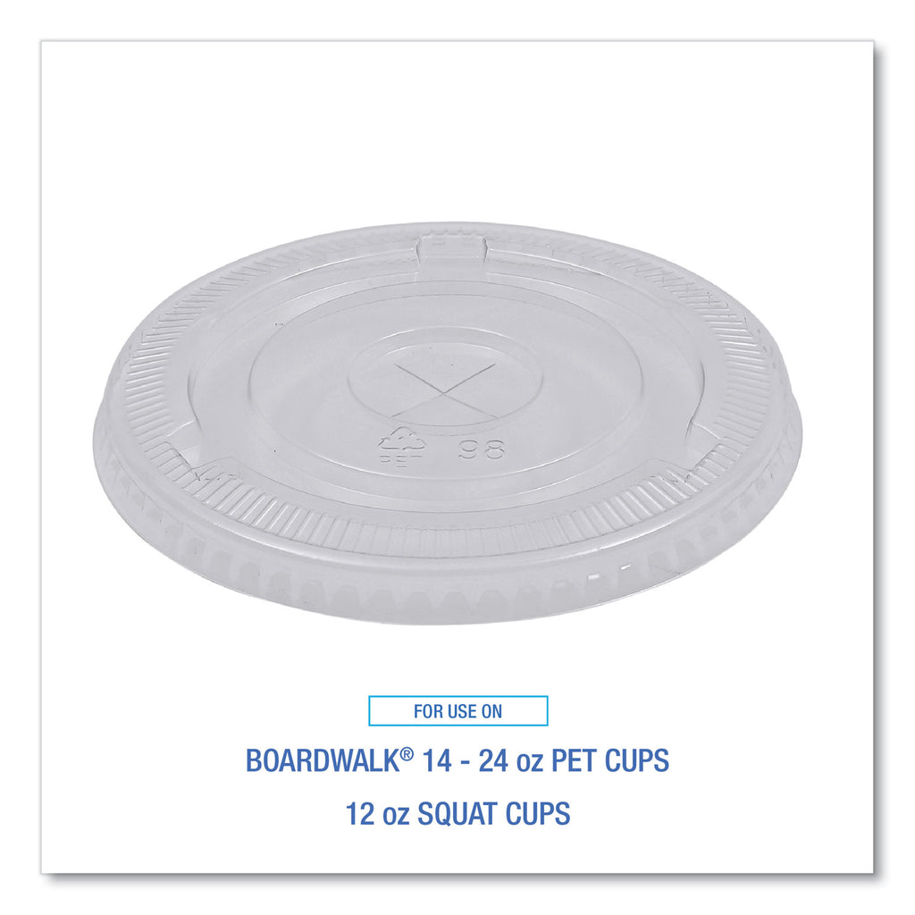 Sturdy PET cold cup lids lock tightly to prevent spills on the go. Fit Boardwalk® PET plastic 14 oz to 24 oz cups. Ridges on the clear top with a straw slot that accommodates a variety of straw sizes and materials. Designed to fit snugly around the rim of the Boardwalk® cups to ensure cold drinks stay inside until they are ready to be sipped. Packed in wrapped sleeves for sanitation and easy transport from the stock room to the beverage counter or preparation area.