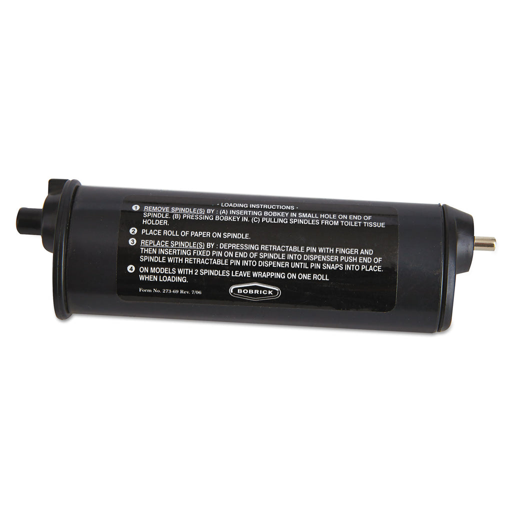 Sturdy, theft-resistant replacement spindle for use in toilet paper dispensers. Designed for use with Bobrick ClassicSeries® toilet tissue dispensers. Allows dispensers to continue functioning smoothly.